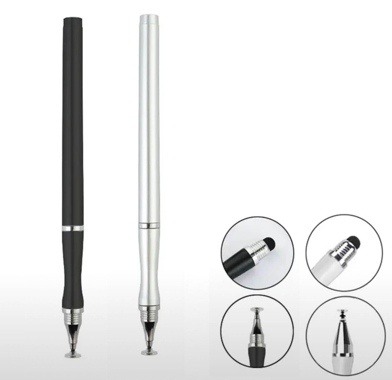 Купить Стилус набор 2 штуки "2 в 1" для рисования на смартфоне, планшете, универсальный, сенсорная ручка для телефона, черный