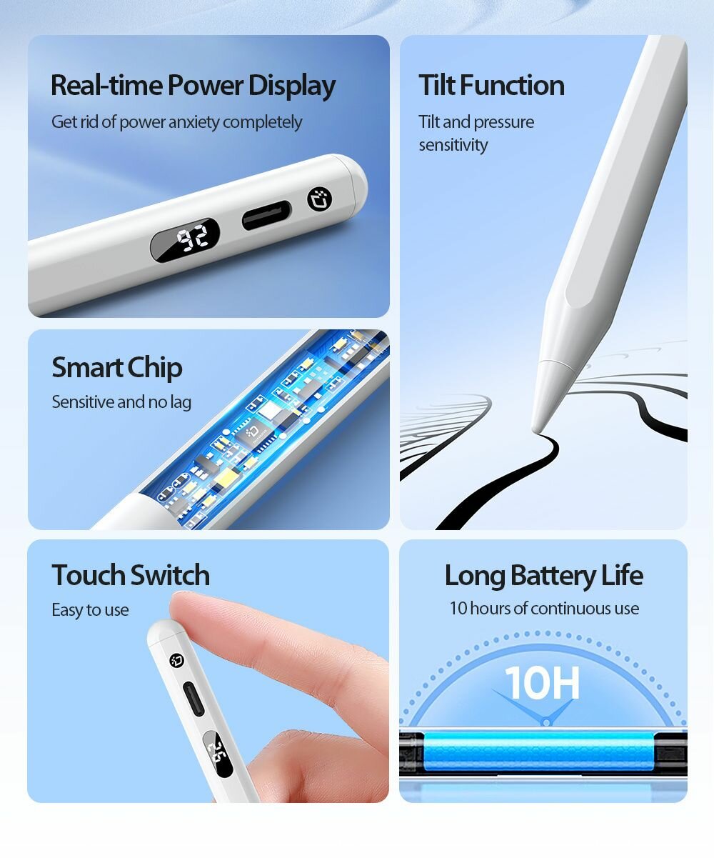 Купить Активный стилус с дисплеем и индикатором заряда Dux Ducis SP-02, белый