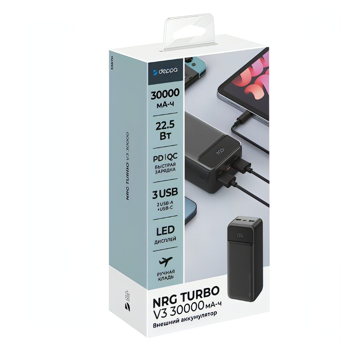 Внешний аккумулятор Deppa NRG Turbo V3 30000 mAh 22.5W (33670) черный интересное: