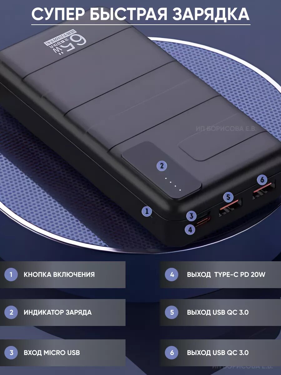 Повербанк 60000mah с быстрой зарядкой, внешний аккумулятор
