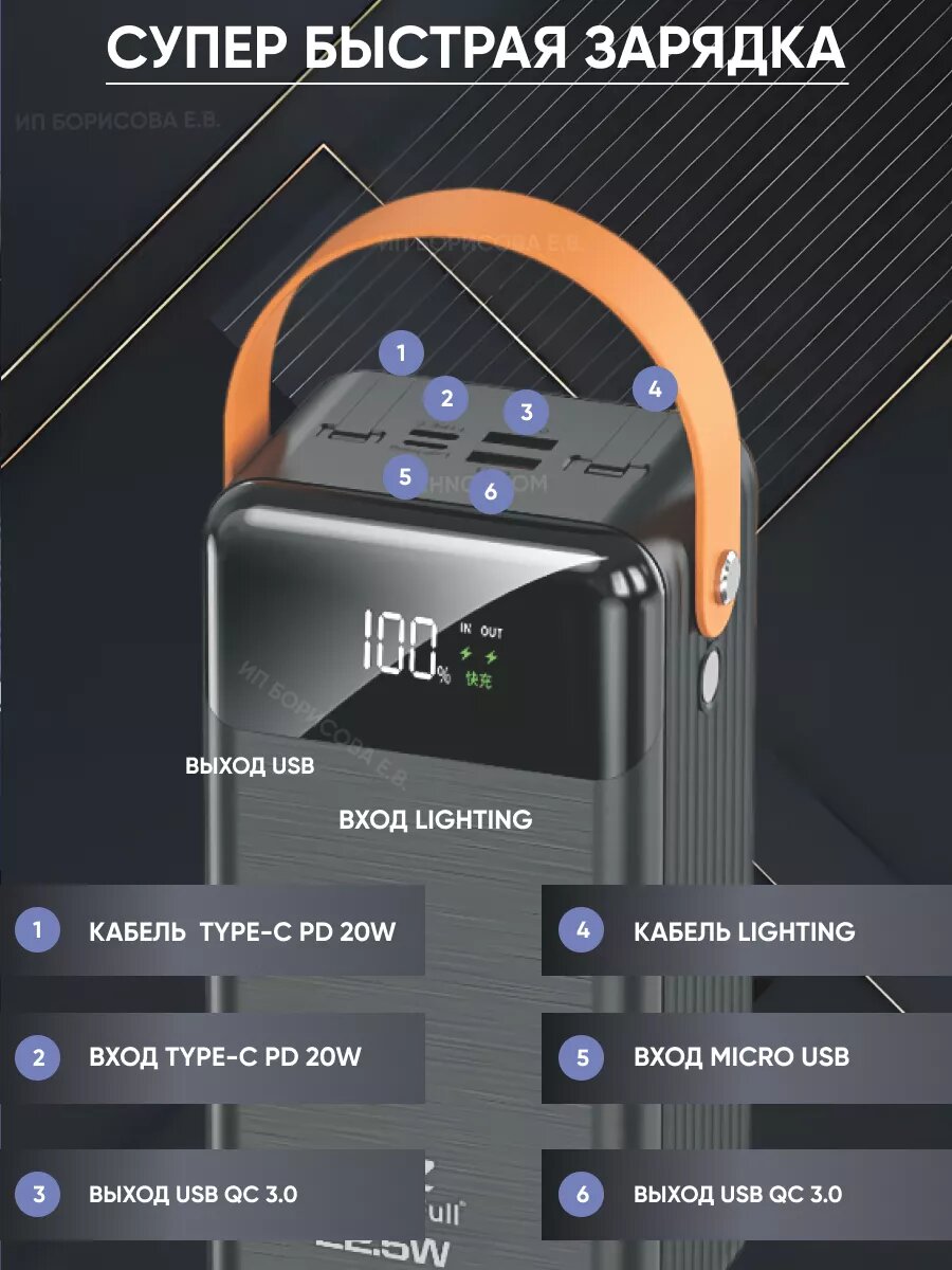 Повербанк 60000mah с быстрой зарядкой, внешний аккумулятор интересное: