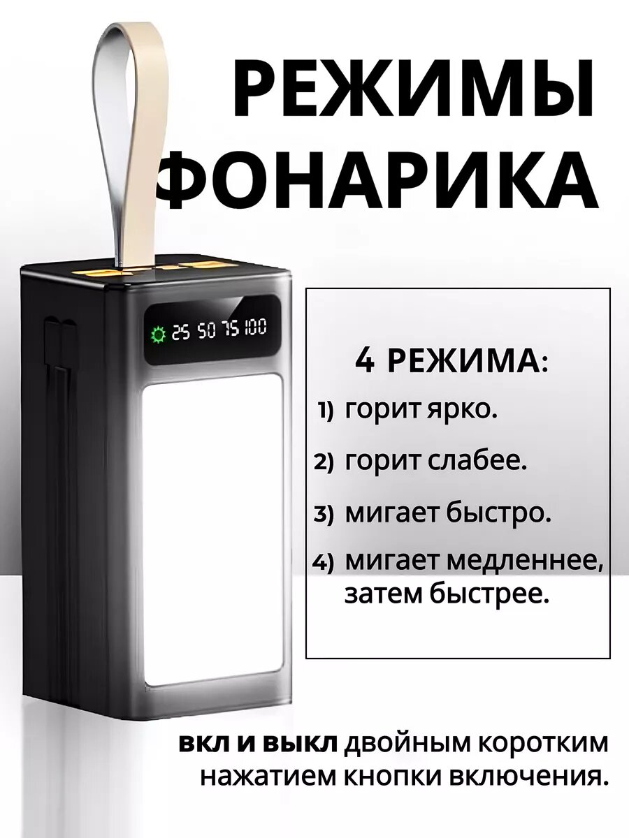 Мощный повербанк на 50 000 мАч с фонариком и защитой от перегрузок 7 портов зарядки , 3 кабеля зарядки