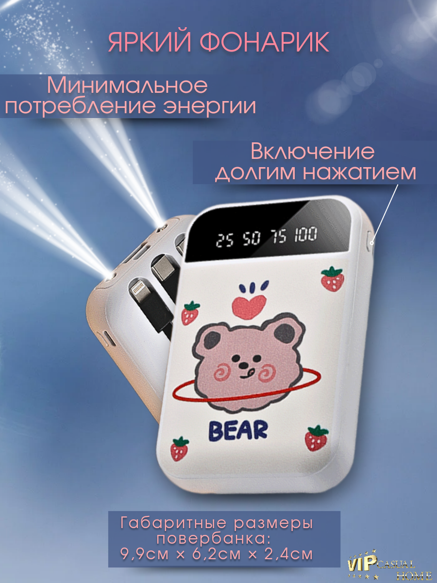 Портативный аккумулятор Power Bank, Li-ion, 20000 мАч, с фонариком, бежевый интересное: