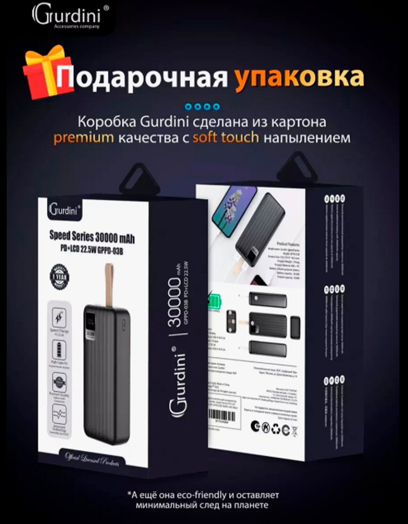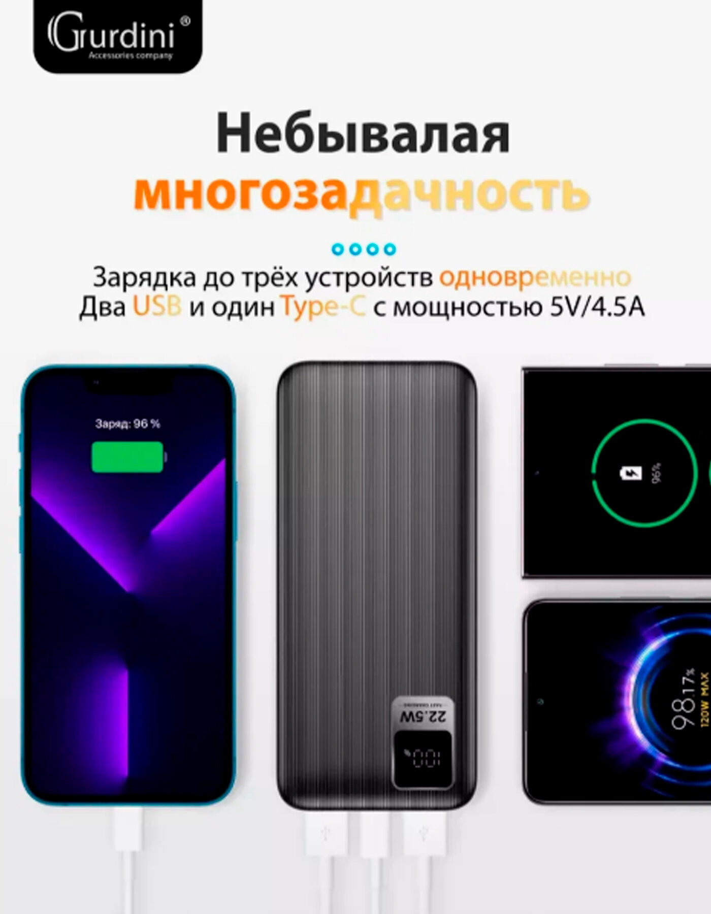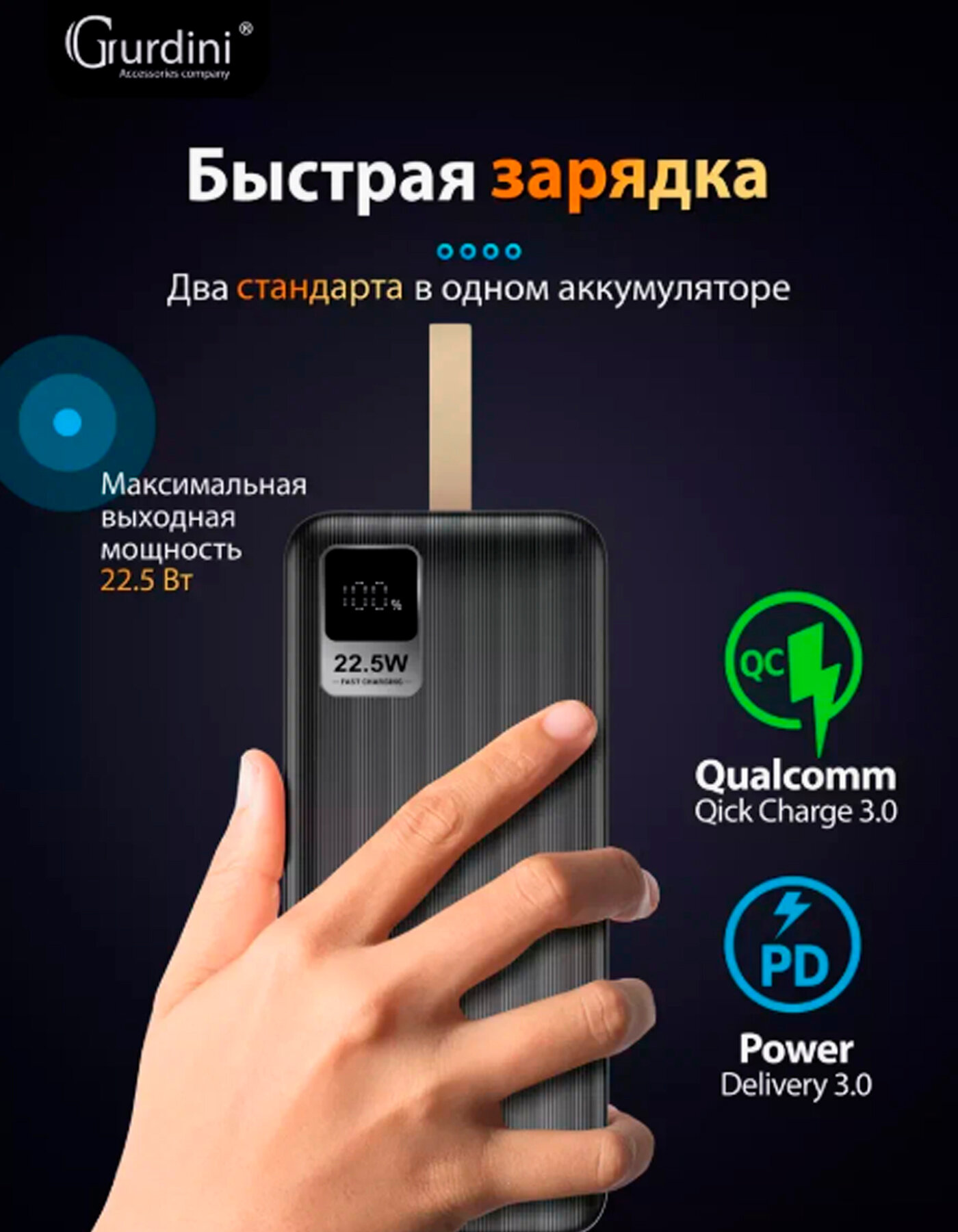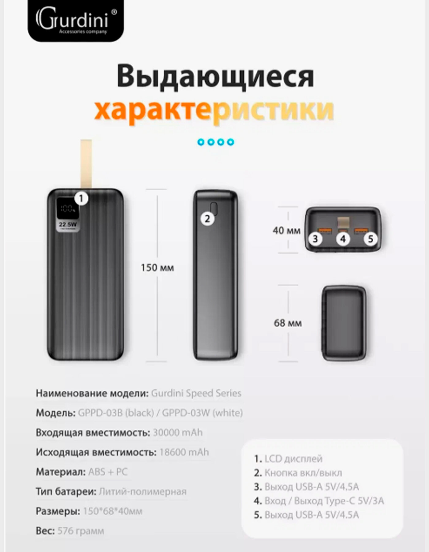 Внешний аккумулятор с быстрой зарядкой, 30000mAh, Пауэрбанк интересное:
