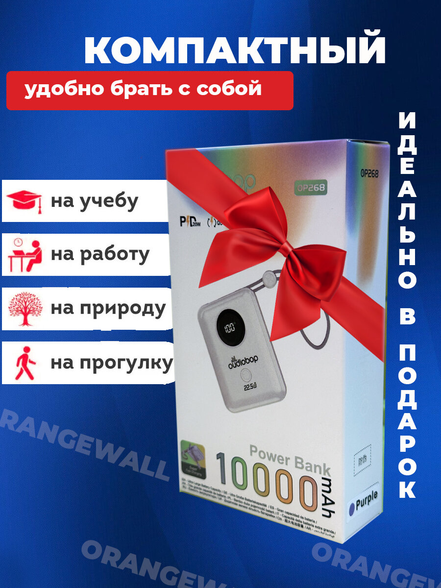 Повербанк компактный мощный Фиолетовый/22,5 w/power bank 10000 Мah/Провода для зарядки в комплекте интересное:
