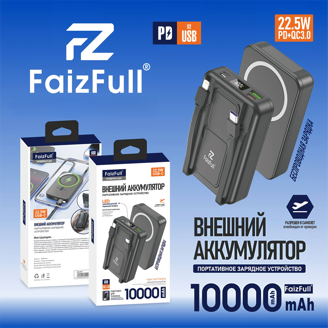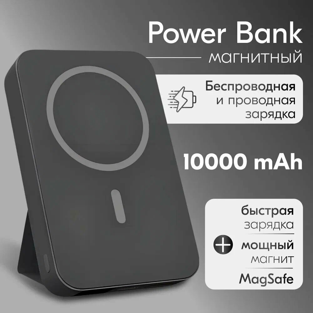 Портативный аккумулятор MagSafe, повербанк для iPhone, 10000мАч, 2 встроенных кабеля Type-C/Lightning интересное: