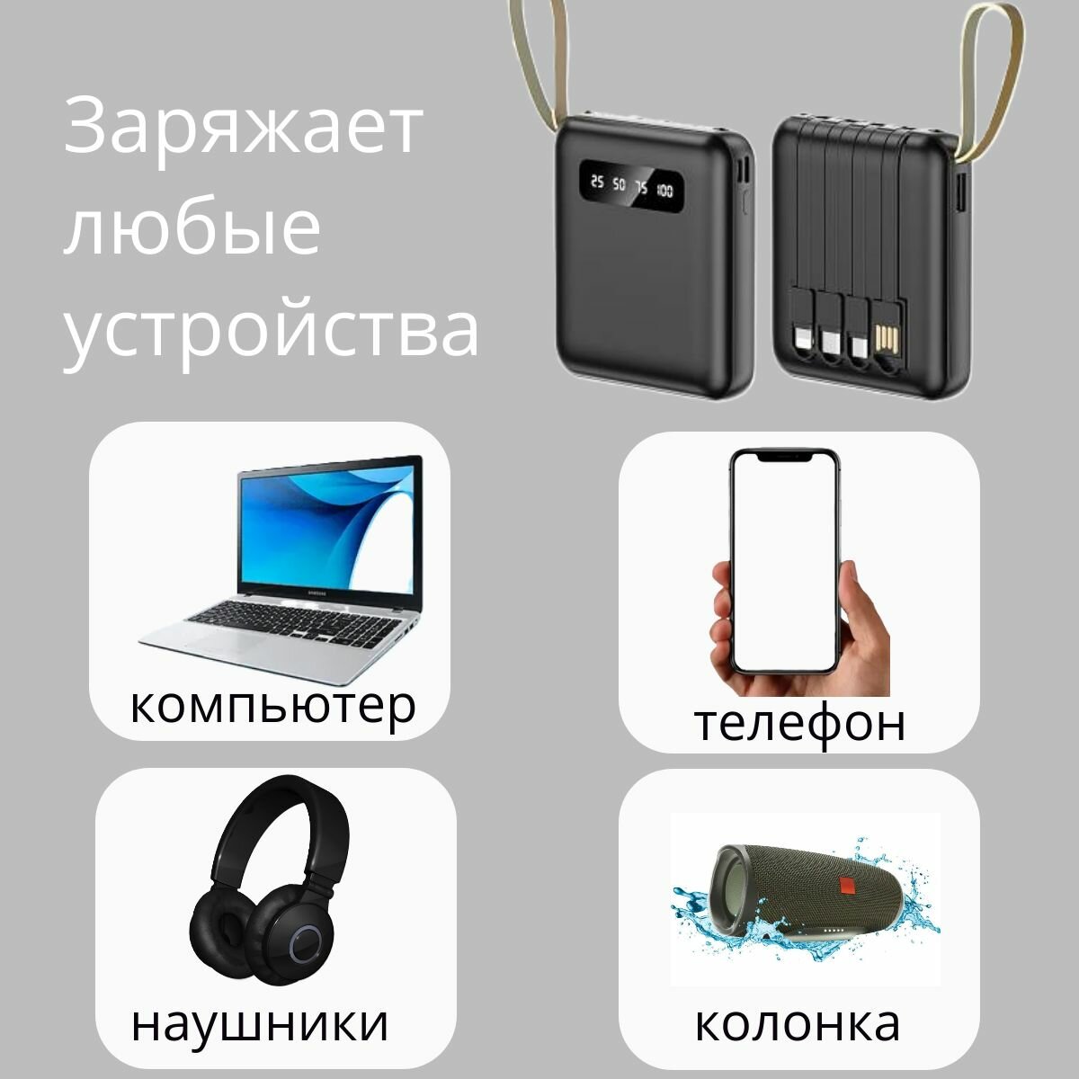 Ниже Вы можете прочитать отзывы на Внешний аккумулятор портативный повербанк портативная зарядка с проводами мощный 20000 мАч (powerbank), ознакомится с подробными характеристиками, посмотреть интересные обзоры и фотографии на Внешний аккумулятор портативный повербанк портативная зарядка с проводами мощный 20000 мАч (powerbank).