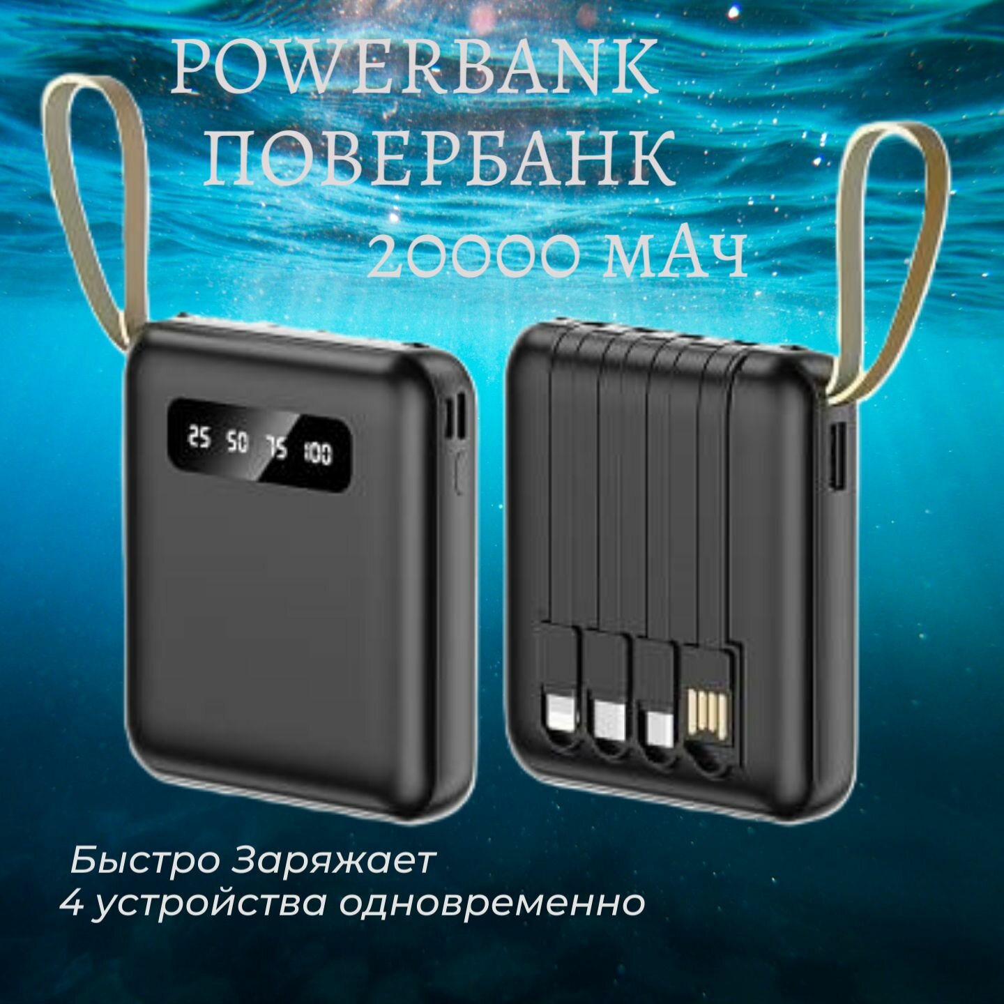 Внешний аккумулятор портативный повербанк портативная зарядка с проводами мощный 20000 мАч (powerbank) интересное: