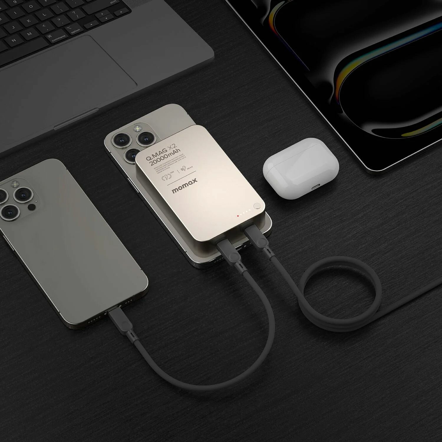 Купить Беспроводной дополнительный аккумулятор (MagSafe) Momax Q.Mag X2 20000 Ультратонкий Titanium