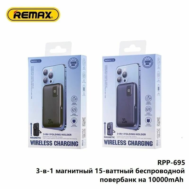 Купить Power Bank Remax RPP-695 10000mAh 22.5 Вт / 15 Вт MagSafe / Портативное зарядное устройство пауэрбанк повербанк для телефона с быстрой зарядкой и поддержкой магсейф
