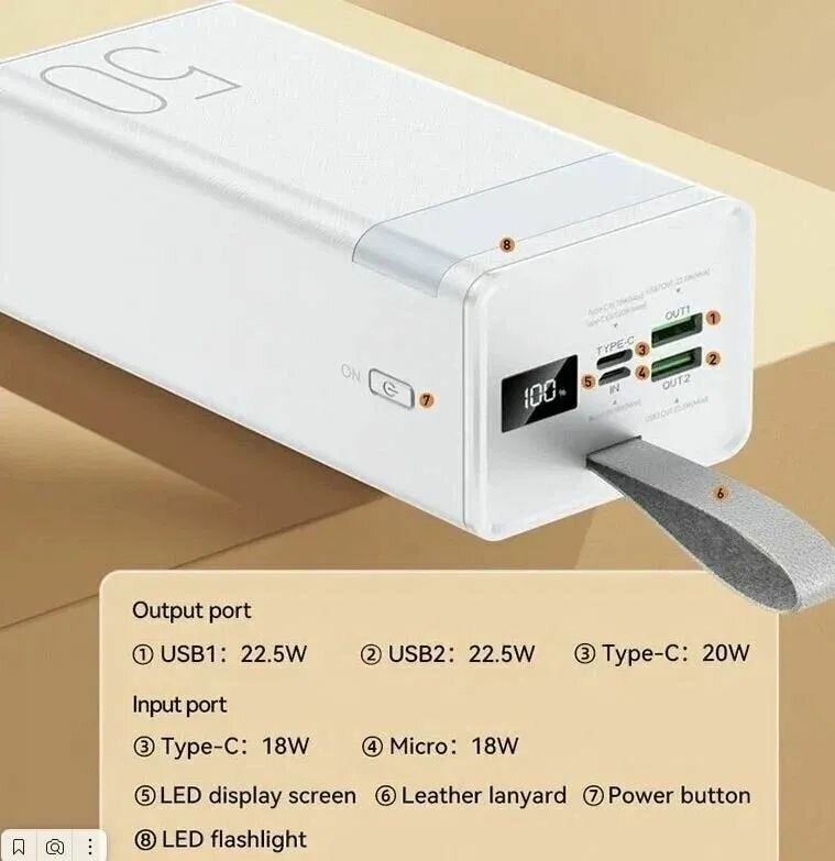 Повербанк 20000 mAh с функцией быстрой зарядки, power bank