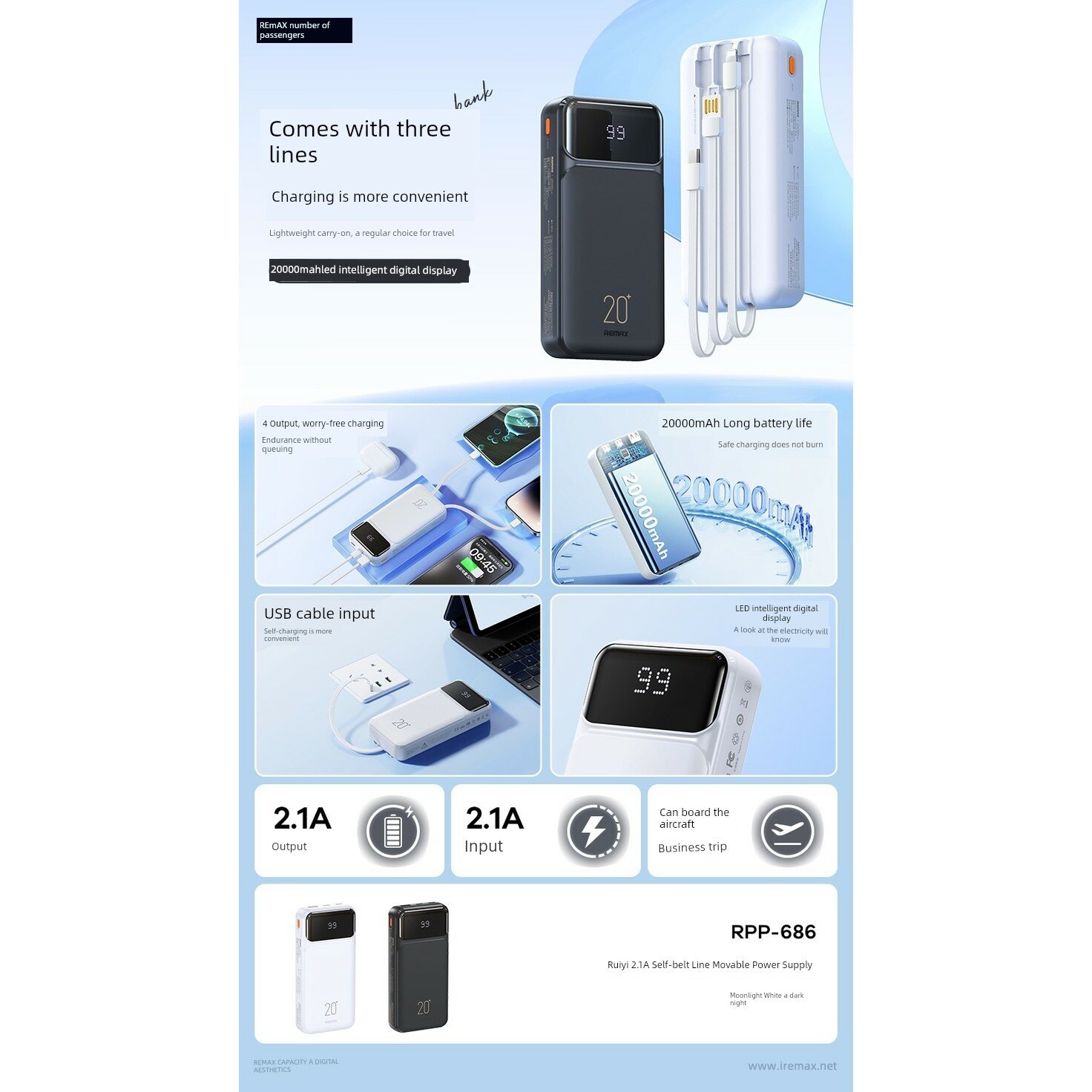 Внешний аккумулятор Power Bank 60000 мАч с быстрой зарядкой и фонариком, Remax RPP-100