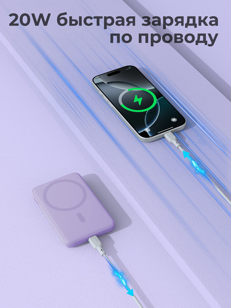 Внешний аккумулятор Aukey, 10 000 мАч, 20 Вт, MagSafe, фиолетовый (PB-MS04)