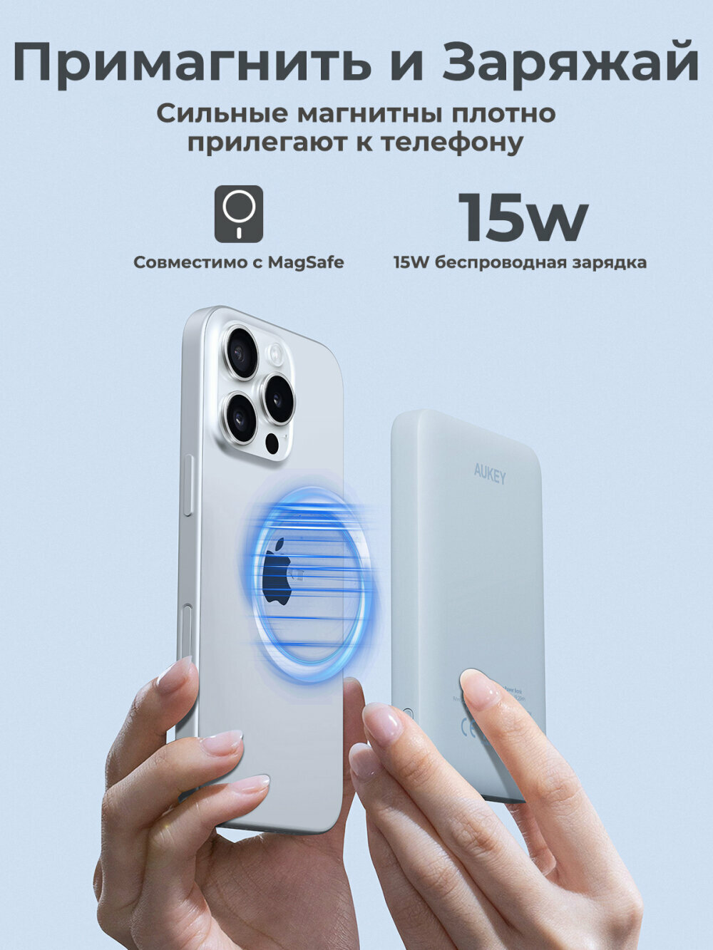 Внешний аккумулятор Aukey MS03 Magnetic 5000 Голубой (RU)