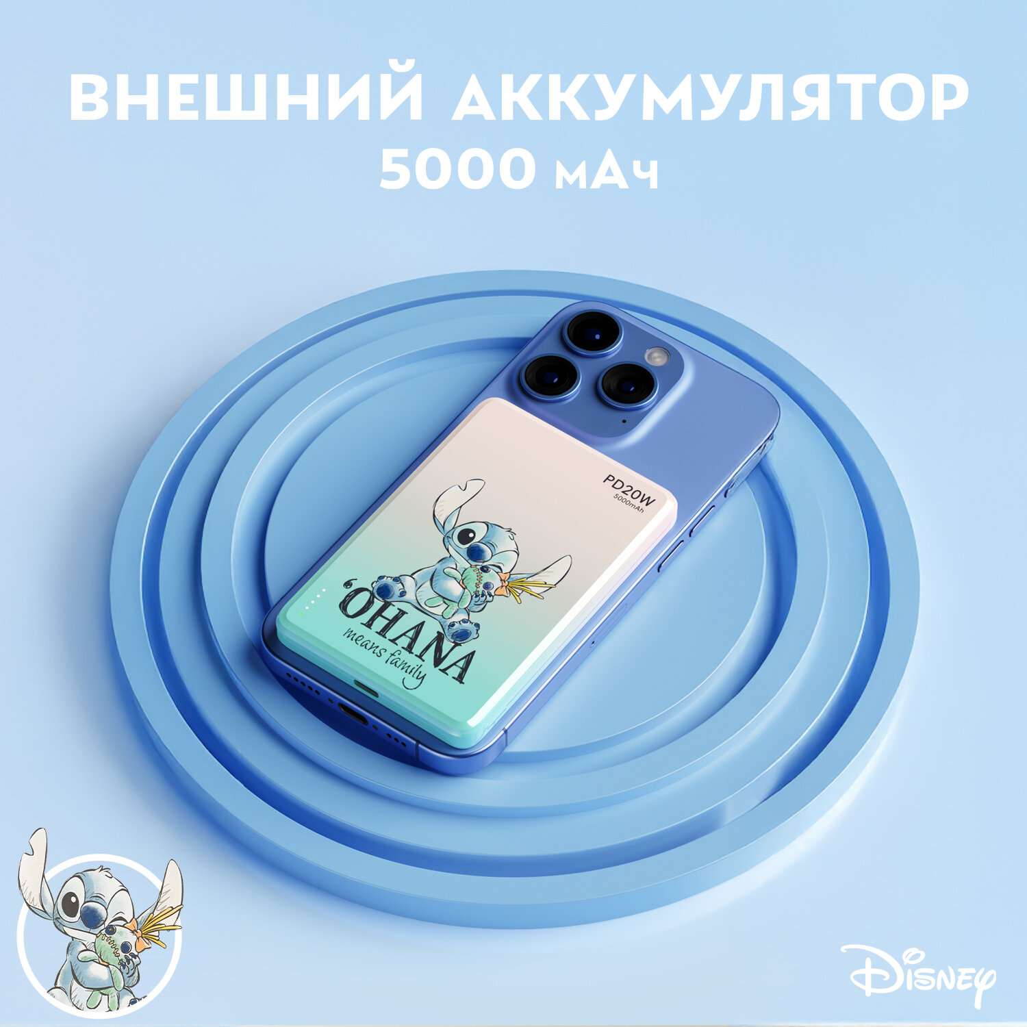 СохранитьВнешний беспроводной аккумулятор Дисней Лило и Стич: Стич, 5000 мАч, с индикатором заряда и магнитной фиксацией интересное: