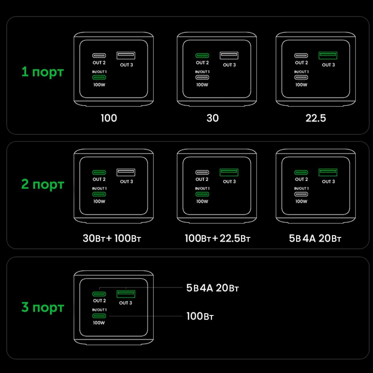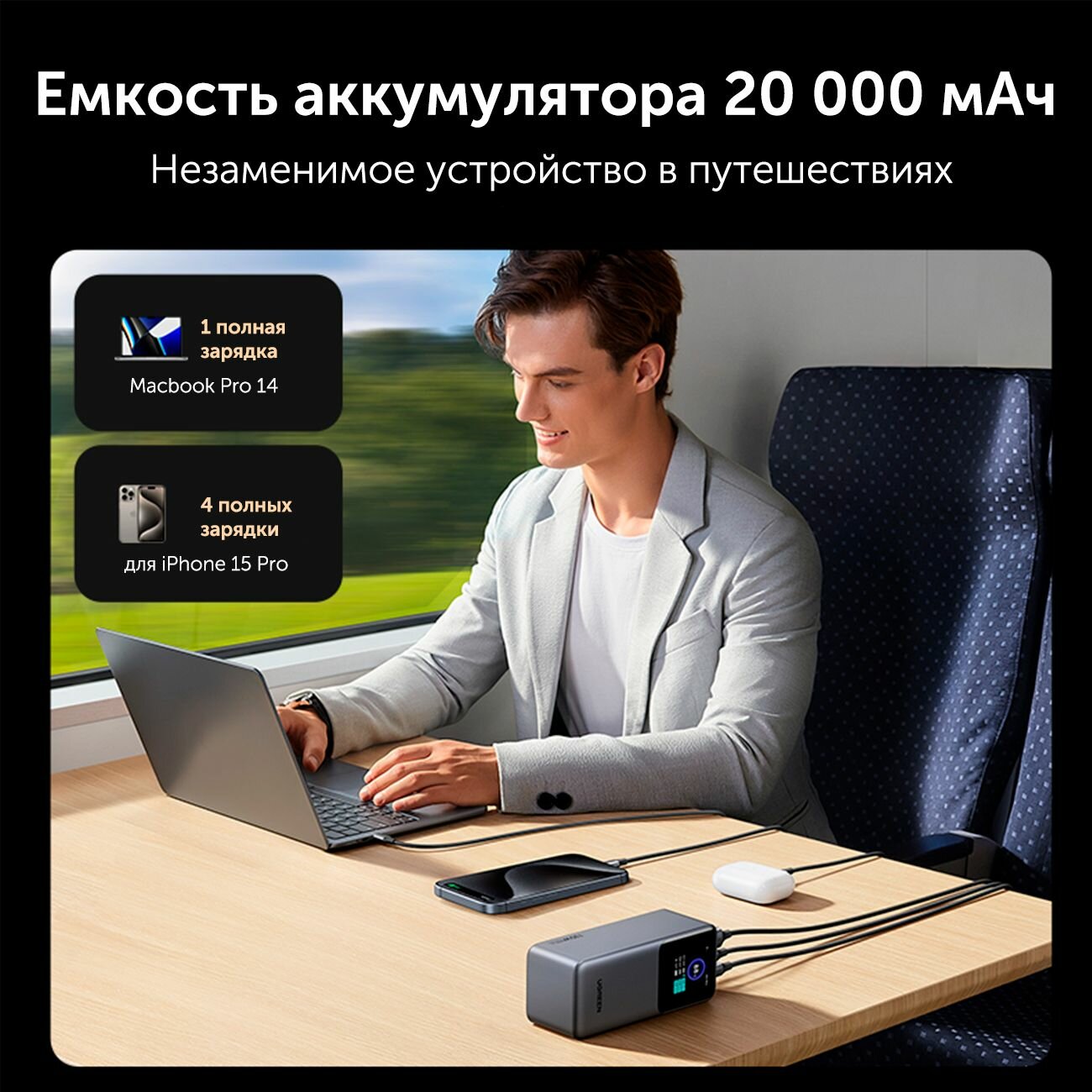 Внешний аккумулятор UGREEN PB721 (35524B) 20000mAh 130W Fast Charging Power Bank. Цвет: серый интересное: