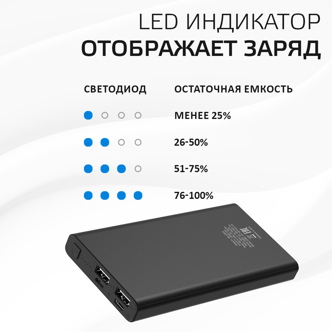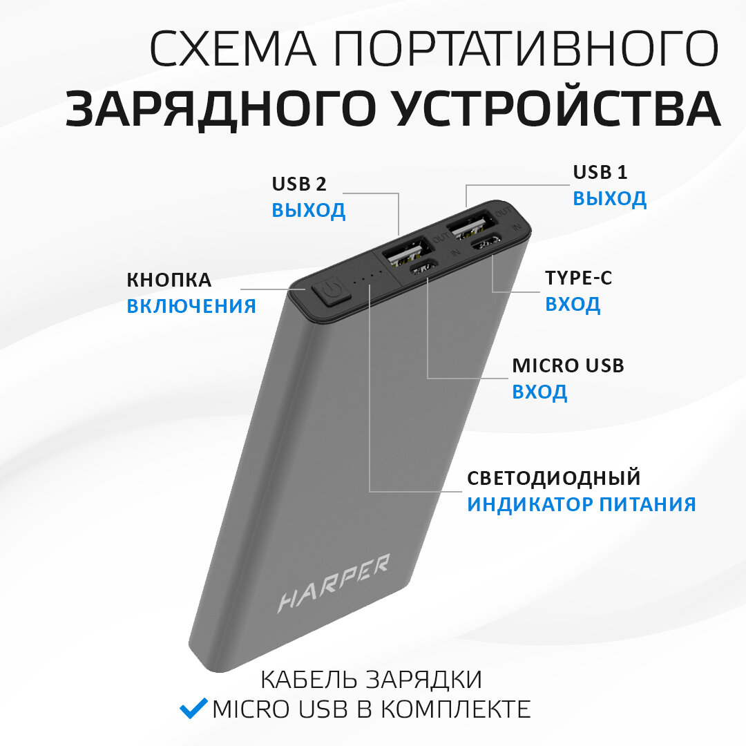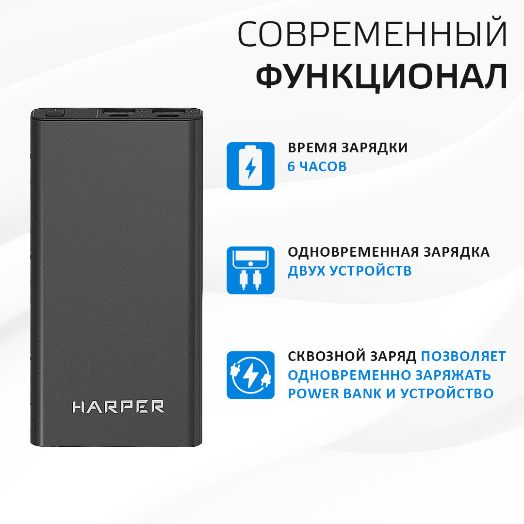 Повербанк / Внешний аккумулятор для телефона 10 000 мАч / Type-C, USB х 2, Harper PB-10031 интересное: