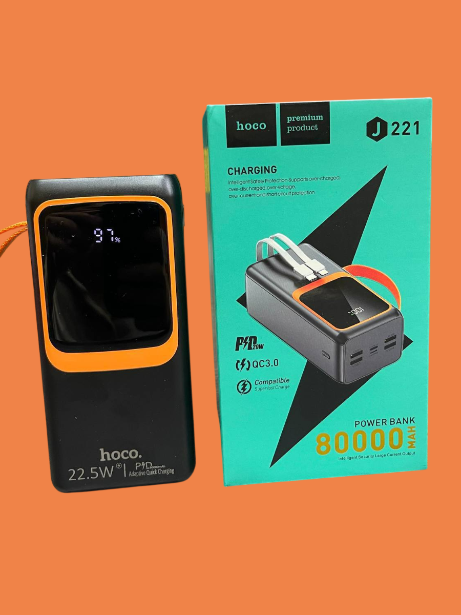 Портативный аккумулятор Hoco J221, Power Bank, 80000 mAh, с фонариком, черный интересное:
