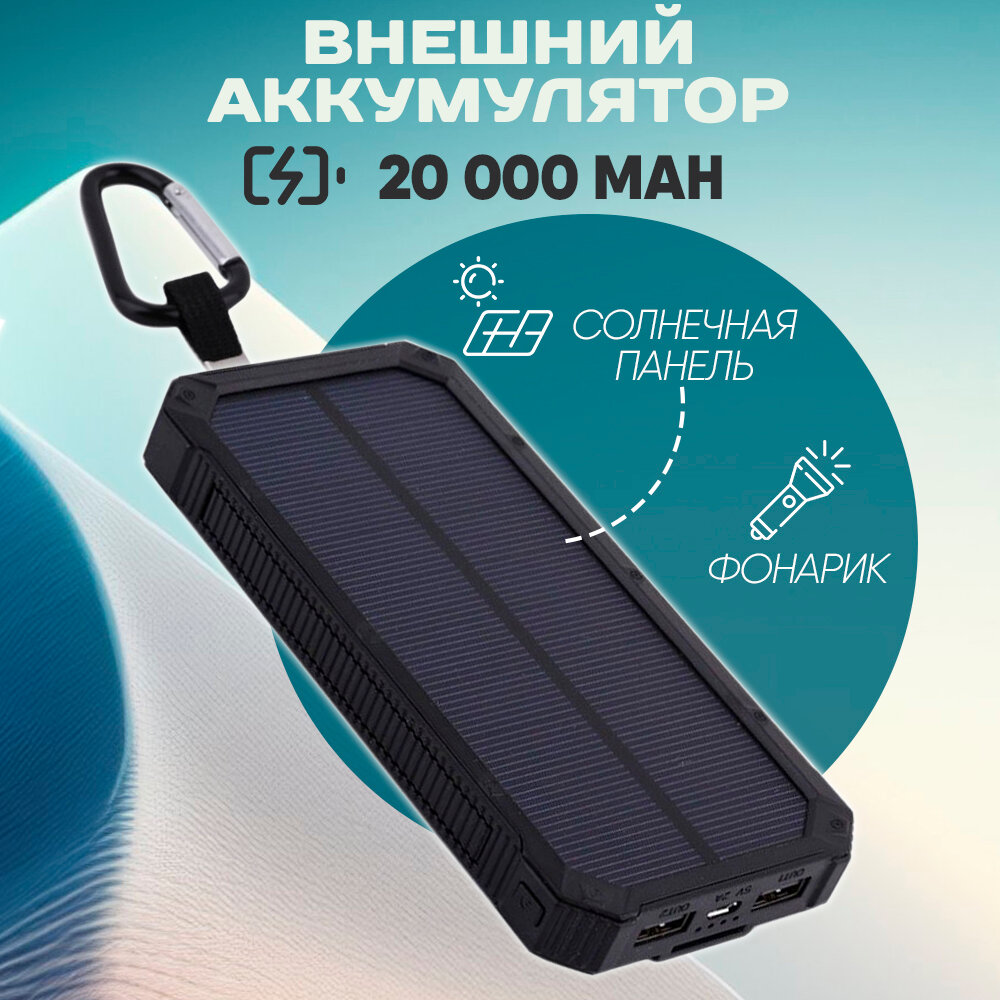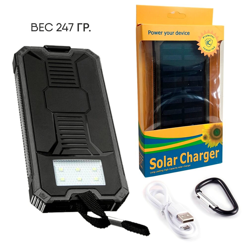 SENNBEYER power bank 30000 мАч, солнечная батарея, с кабелем и экраном.