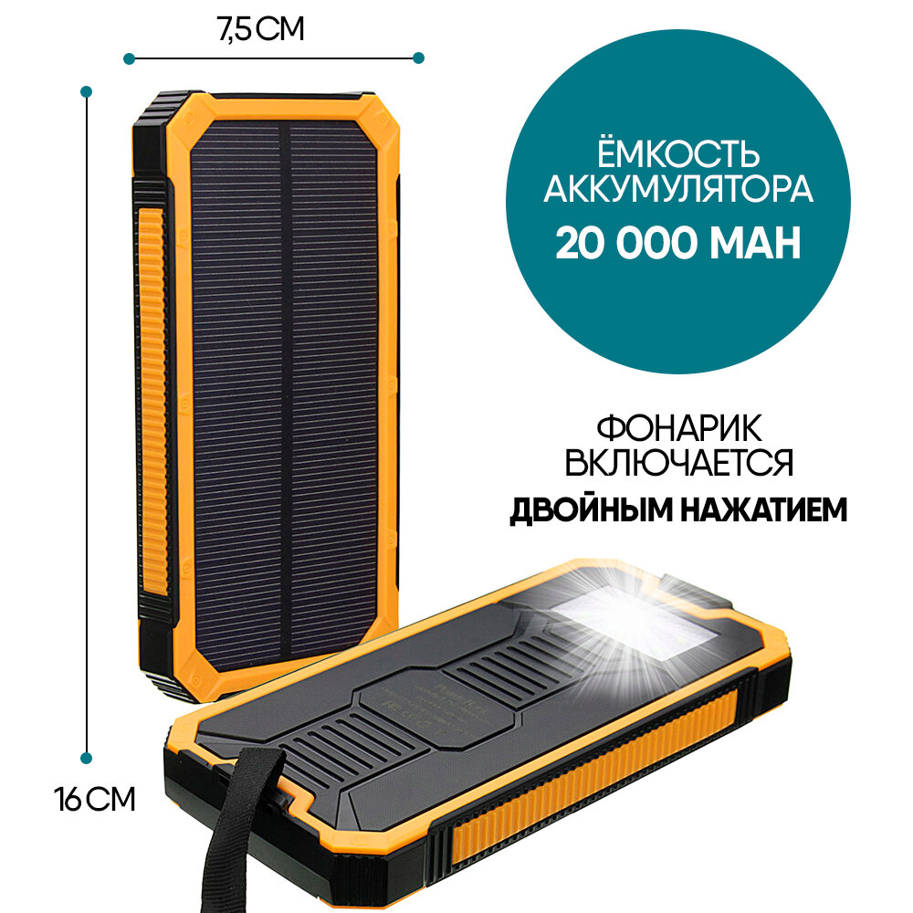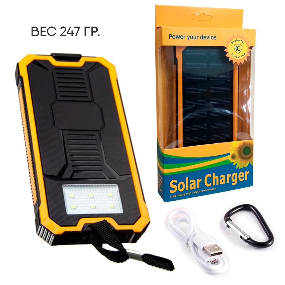 SENNBEYER power bank 30000 мАч, солнечная батарея, с кабелем и экраном.