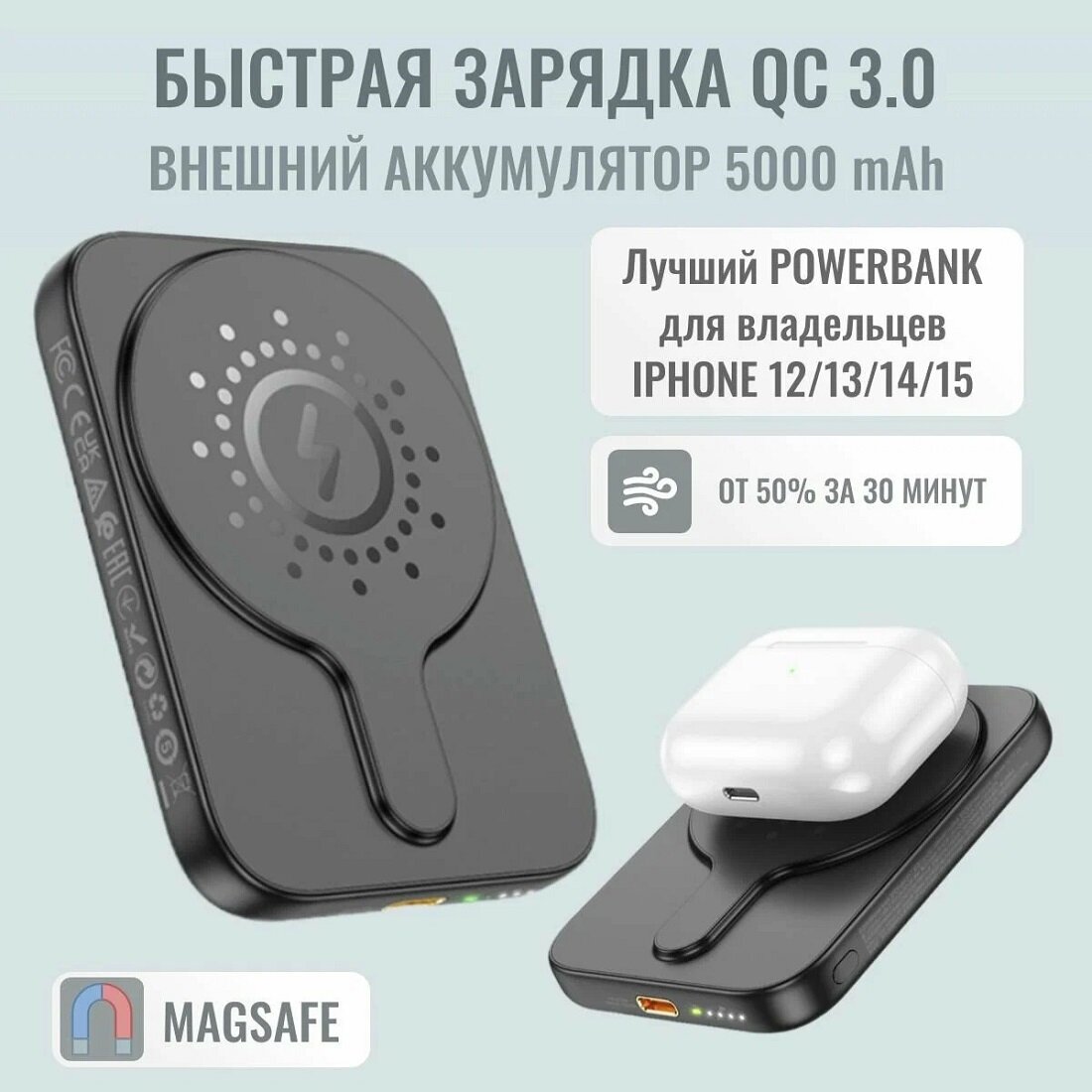 Беспроводной магнитный аккумулятор Hoco J117 MagSafe 5000 mAh PD20W QC3.0, черный интересное: