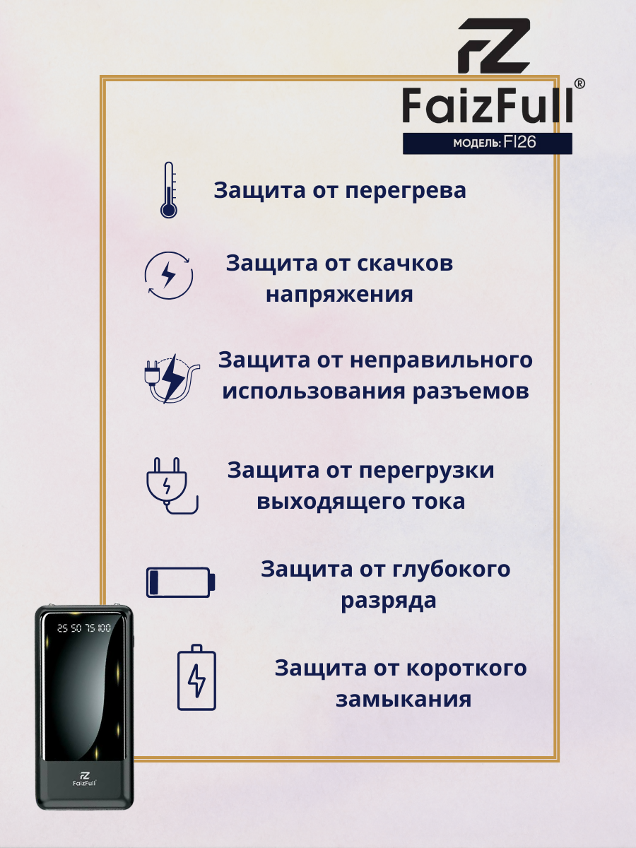Power Bank, FaizFull, FL26, 20000 mah, Повербанк, встроенные провода, фонарик, черный интересное: