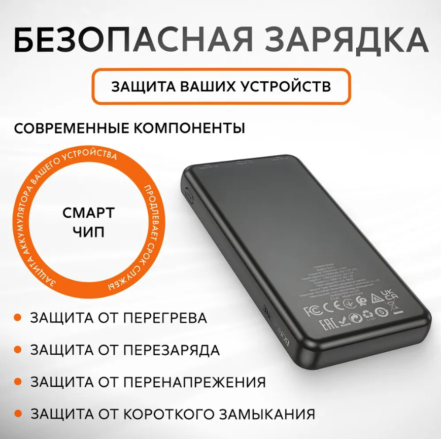 Внешний аккумулятор BOROFONE BJ55, 10000 мАч/power bank (2USB:5V-2.0A) черный интересное: