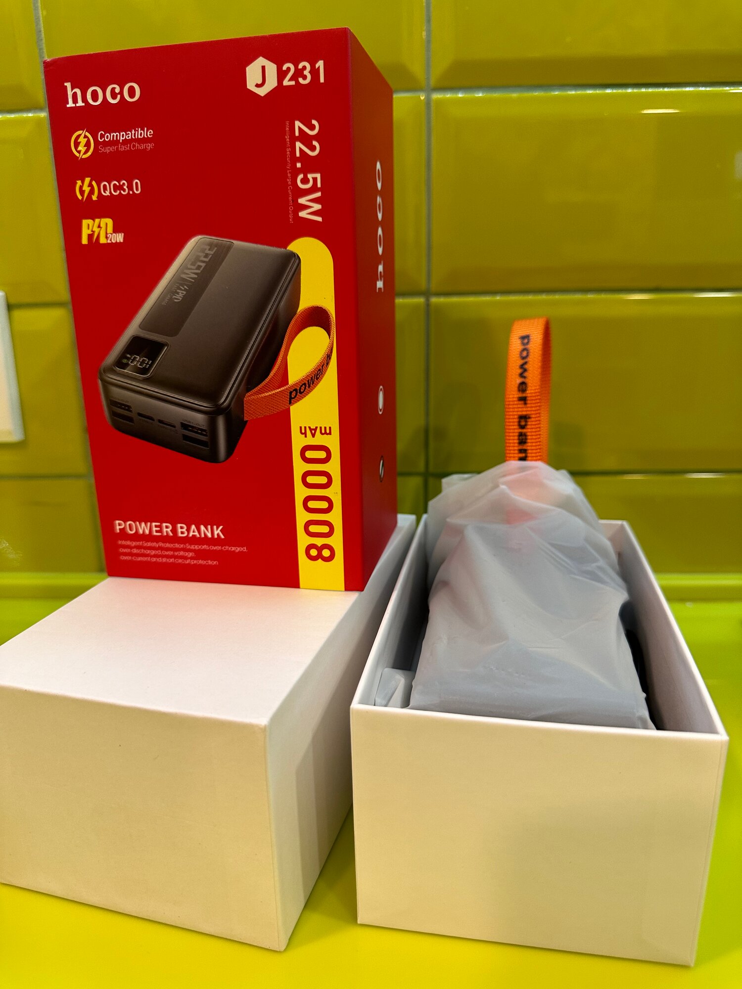 Внешний аккумулятор повербанк 80000 mAh с кабелями/Быстрая зарядка/Hoco/Черный интересное: