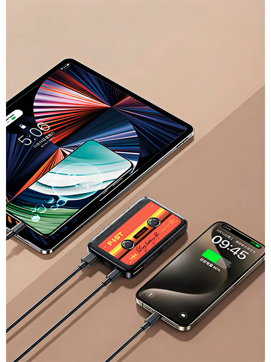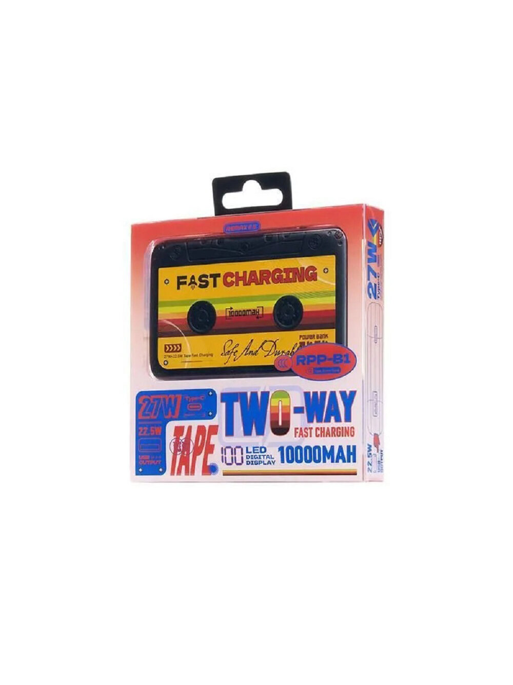 Повербанк / внешний аккумулятор Remax RPP-B1 10000mAh Type-C 27W + USB 22.5W, ретро кассета, цвет Серый/оранжевый интересное: