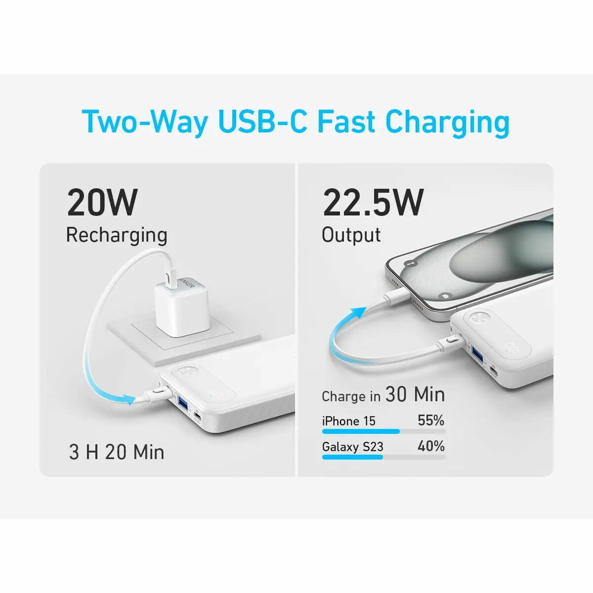 ANKER A1257 10000 mAh 22.5W дополнительный аккумулятор с кабелем USB-C белый (A1257P21) интересное: