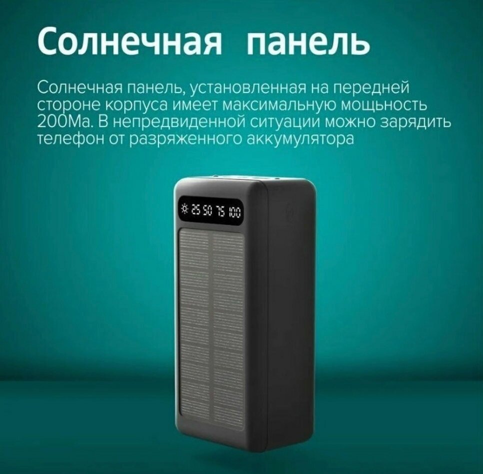 Повербанк для телефона Smart Electronics с солнечной панелью и быстрой зарядкой 40000mAh интересное:
