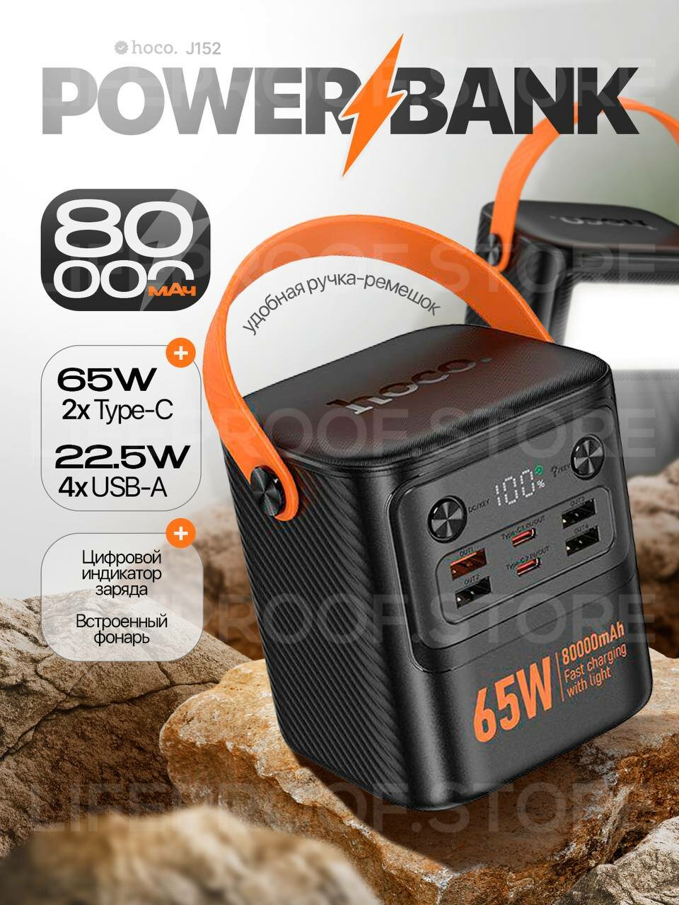 Внешний аккумулятор / повербанк Hoco J152 Pro Tough 80000mAh 4 USB 22.5W + 2 Type-C PD65W, цвет Черный интересное:
