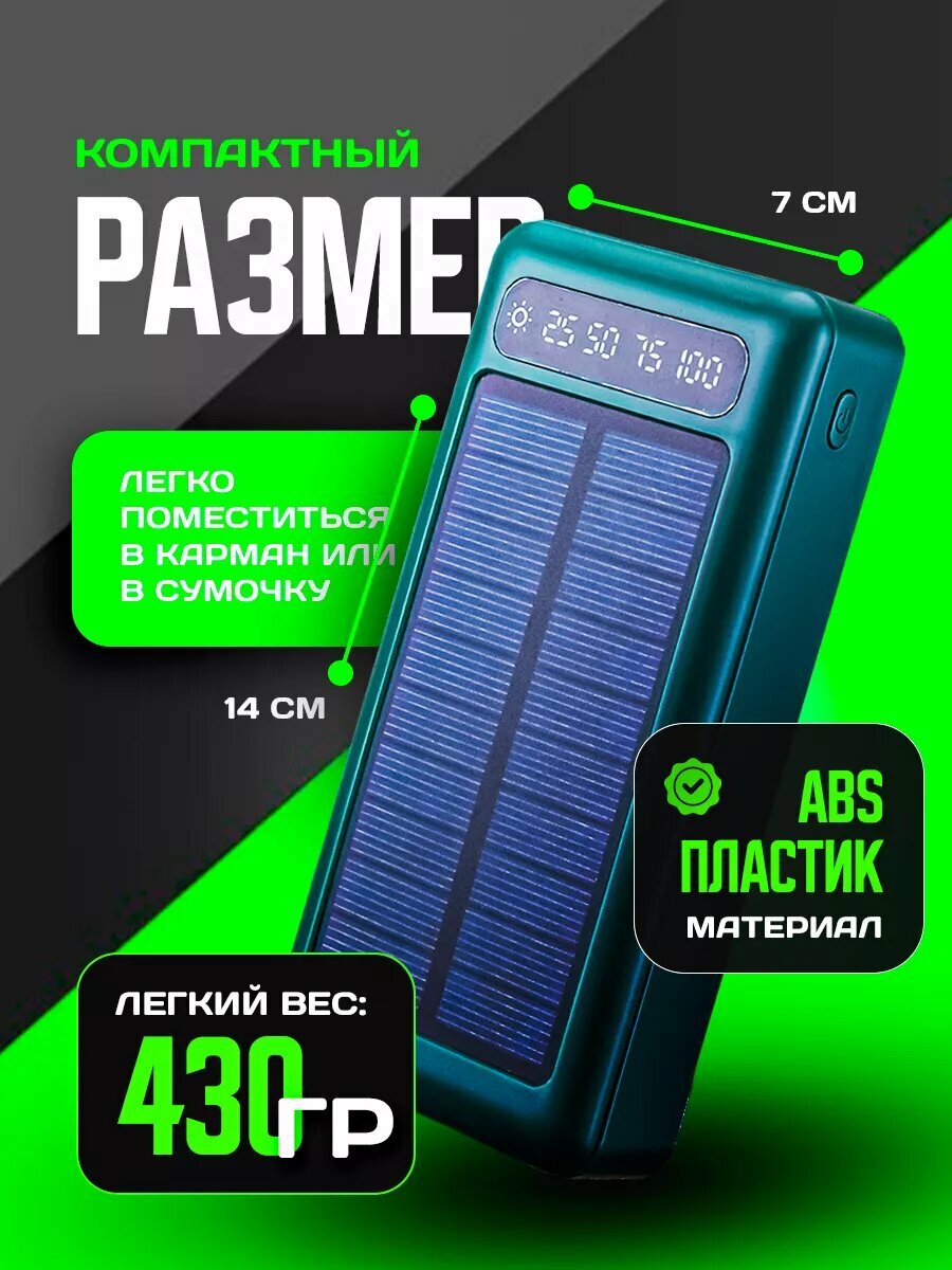 SENNBEYER power bank 30000 мАч, солнечная батарея, с кабелем и экраном.