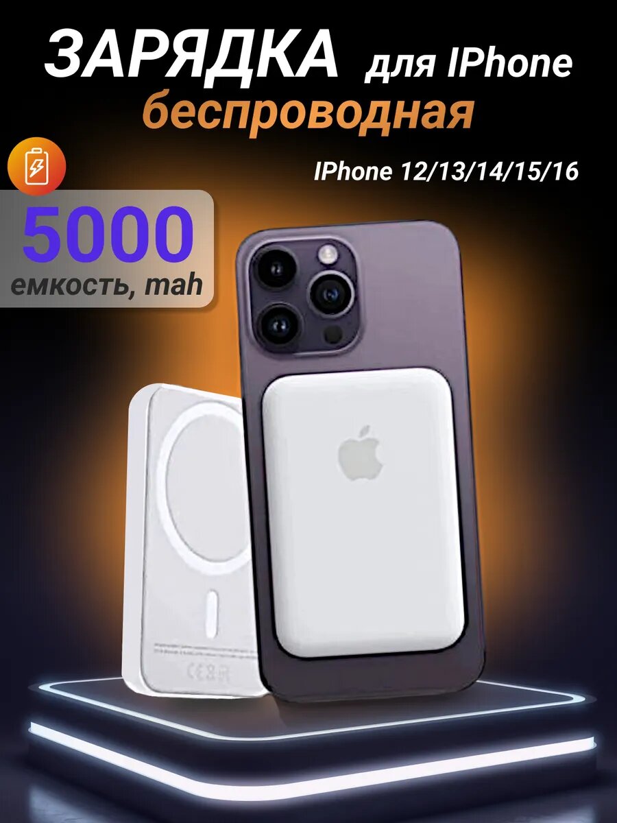 Зарядка для iPhone MagSafe powerbank 5000 mAh, внешний аккумулятор интересное: