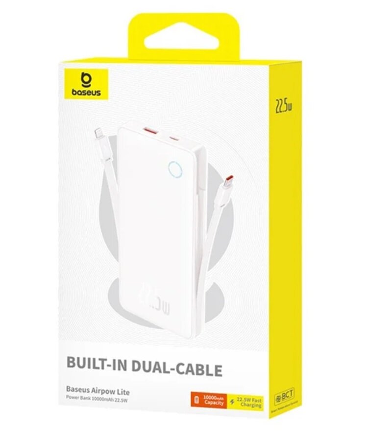 Портативное зарядное устройство Baseus Airpow Lite 10000mAh 22.5W Dual-Cable Moon White (P10067501213-00) интересное: