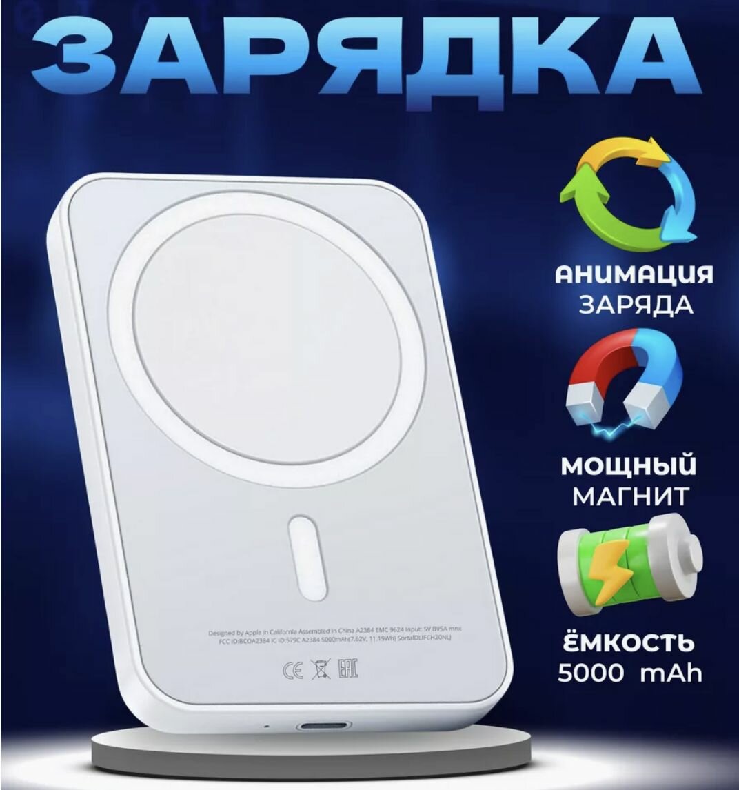 Повербанк Magsafe PowerBank, емкость 5000мАч, магнитный, белый интересное:
