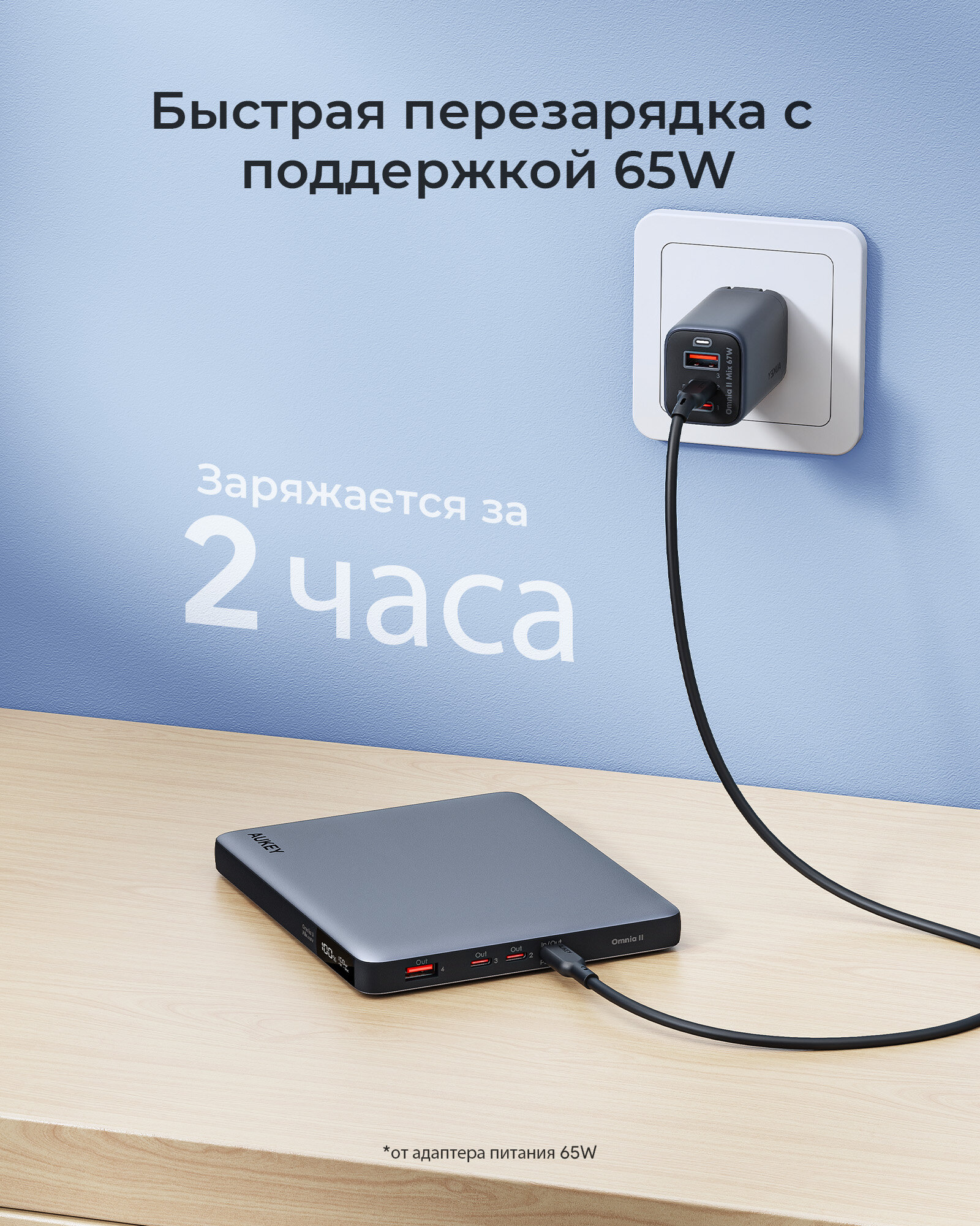 Внешний аккумулятор Aukey Sprint X, 20 000 мАч, 100 Вт, серый (PB-Y44) интересное: