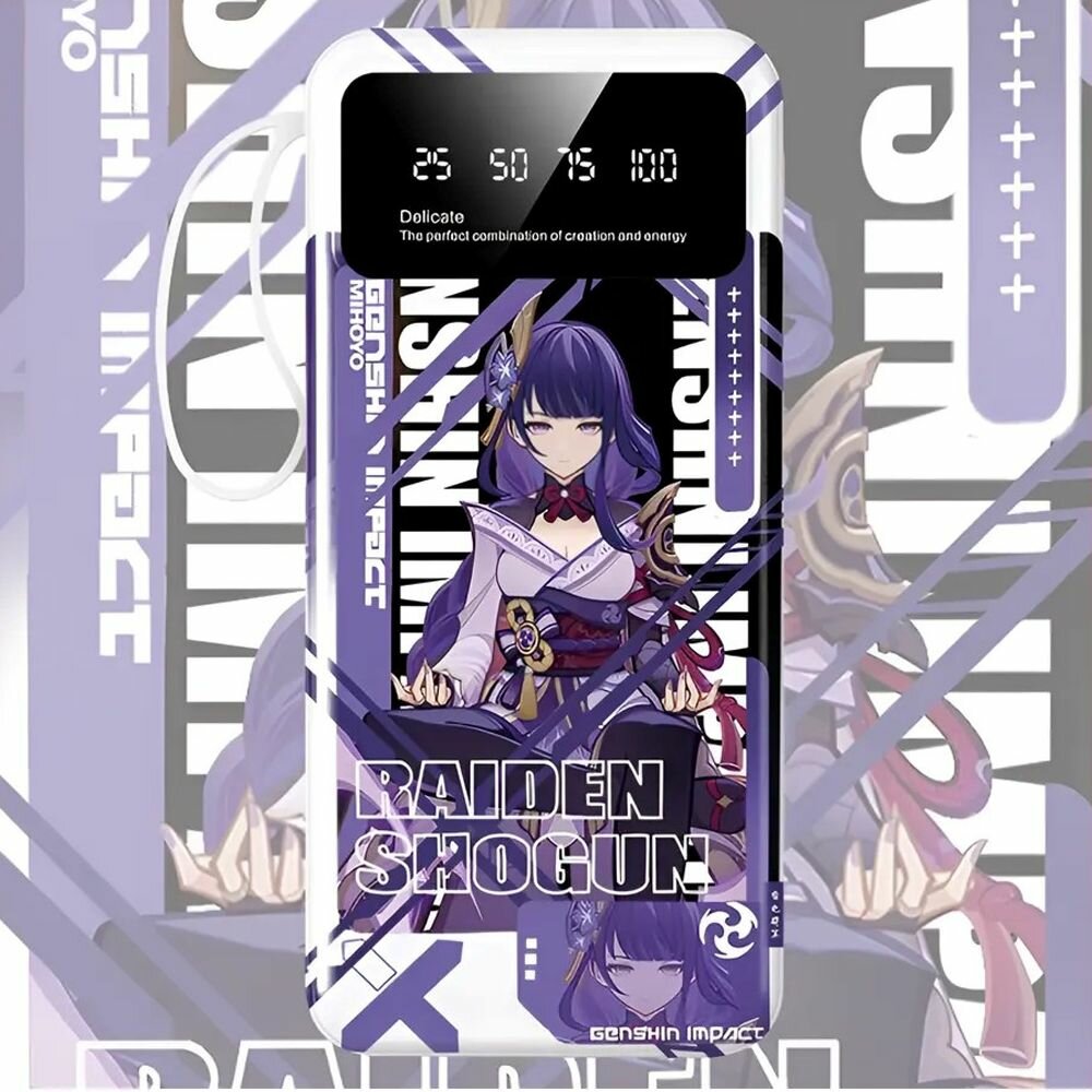 Купить Повербанк 20000 с быстрой зарядкой Genshin Impact "Райден" / со встроенными кабелями