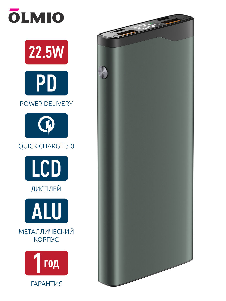 Внешний аккумулятор Olmio QL-10 22.5W 10000 mAh красный