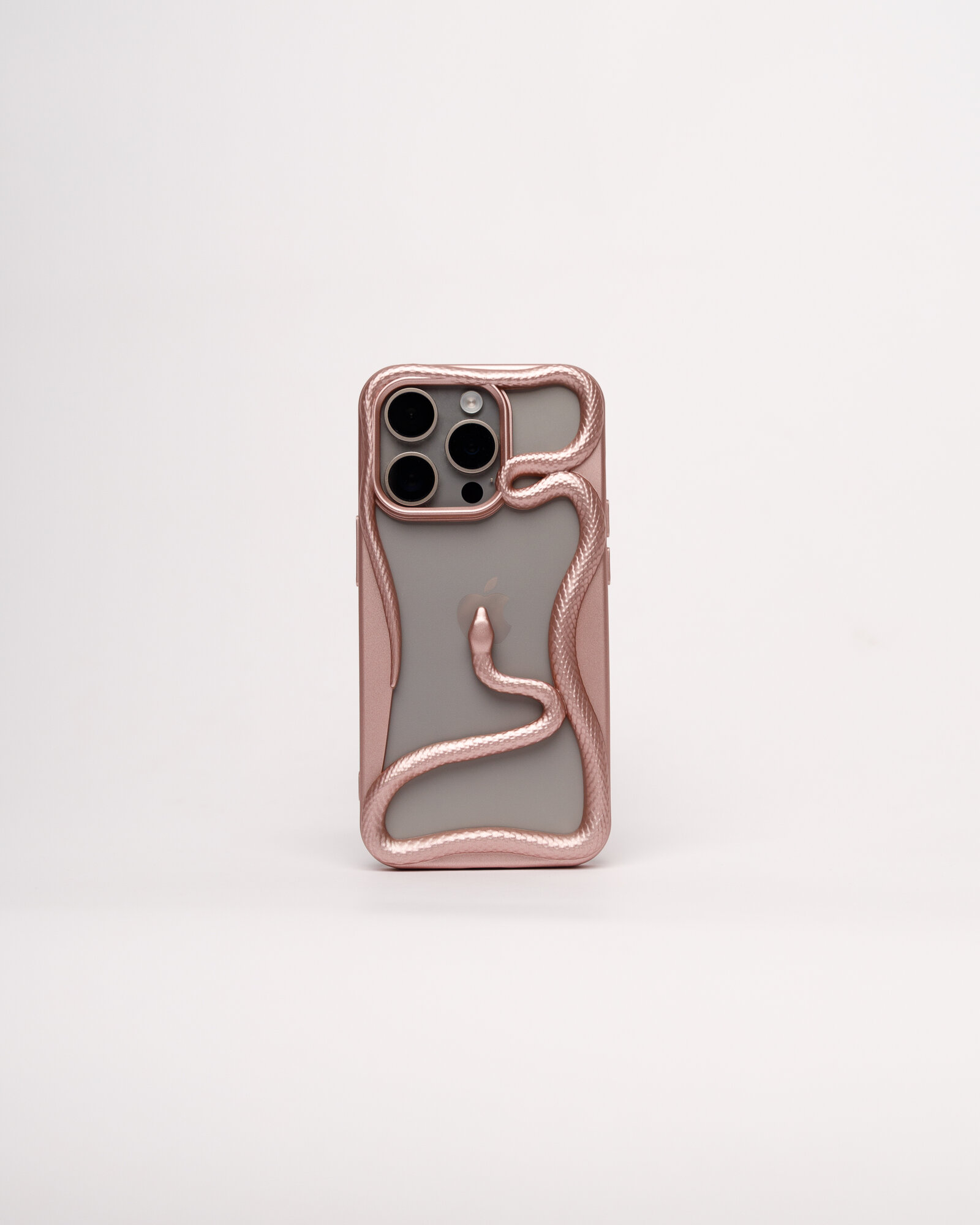 Чехол розового цвета на iPhone 15 Pro с змеиным принтом, пластик
