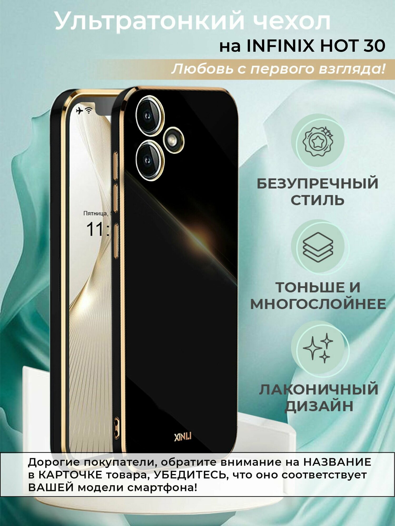 Чехол на Infinix Hot 30 защитный силиконовый бампер на Инфиникс Хот 30 с золотой рамкой Черный интересное: