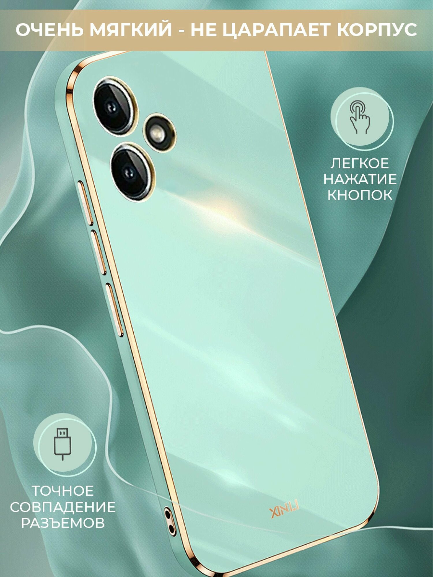 Купить Чехол на Infinix Hot 30 защитный силиконовый бампер на Инфиникс Хот 30 с золотой рамкой Мятный