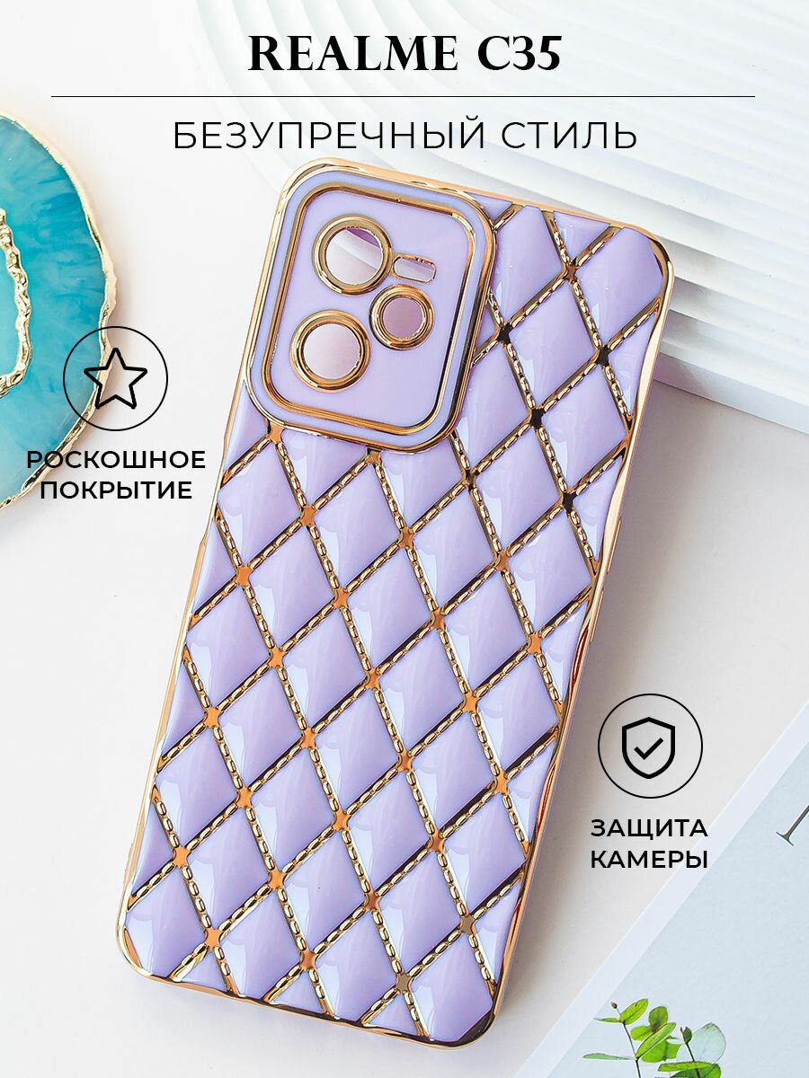 Купить Чехол на Realme C35 силиконовый защитный бампер на реалми с35 с золотой рамкой Сиреневый