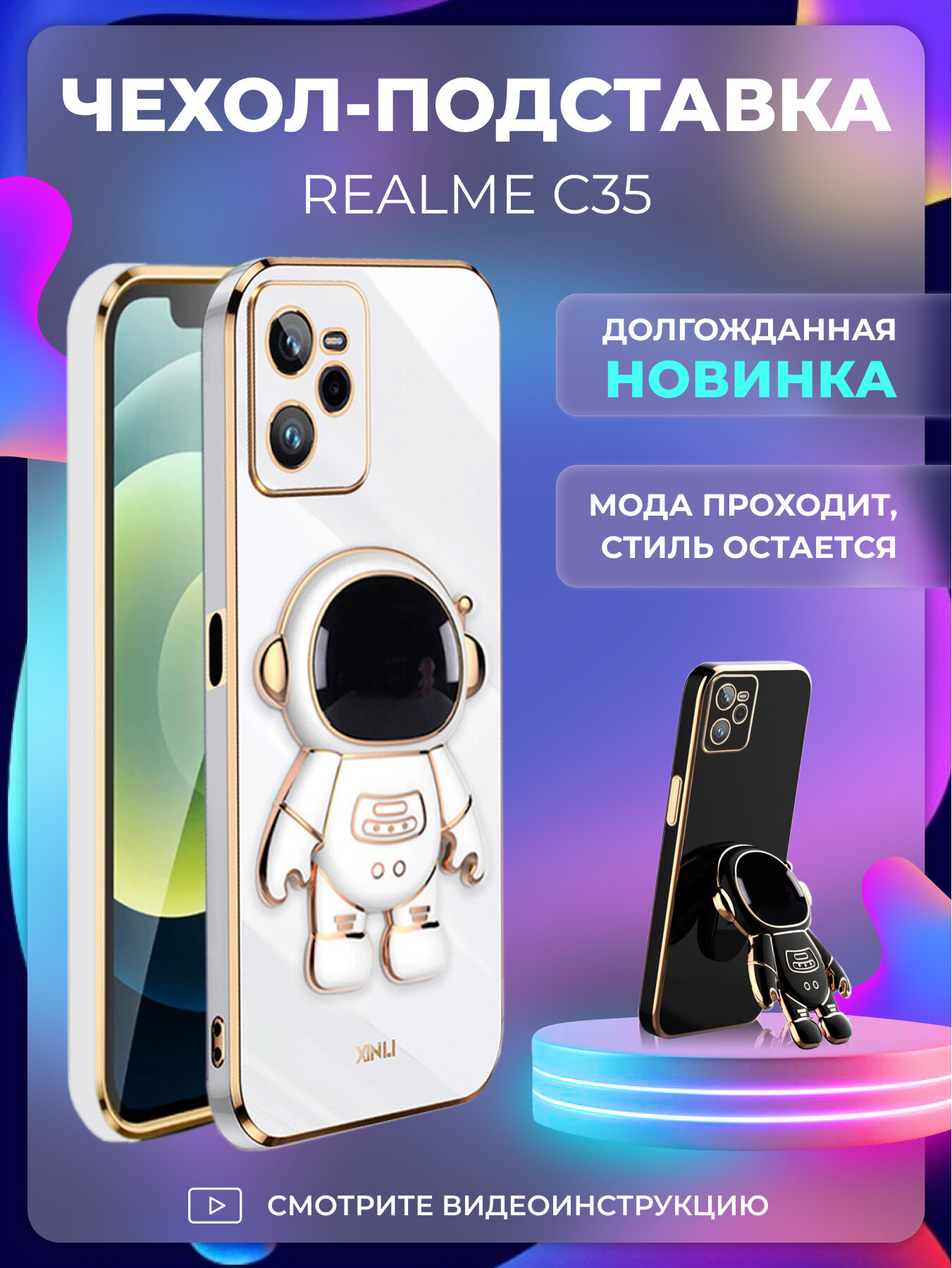 СохранитьЧехол на Realme C35 защитный бампер с подставкой-попсокетом на Реалми С35 Белый интересное: