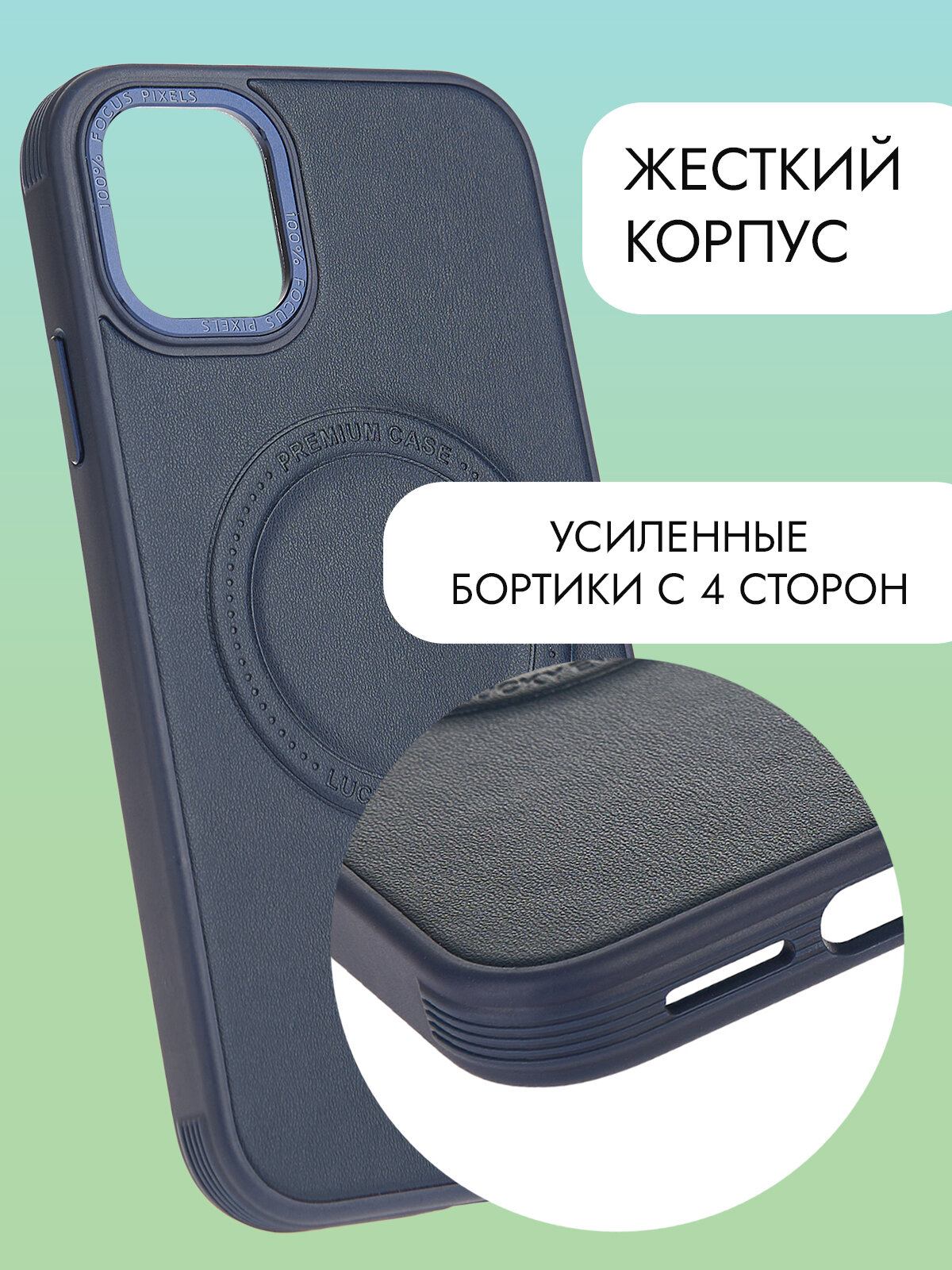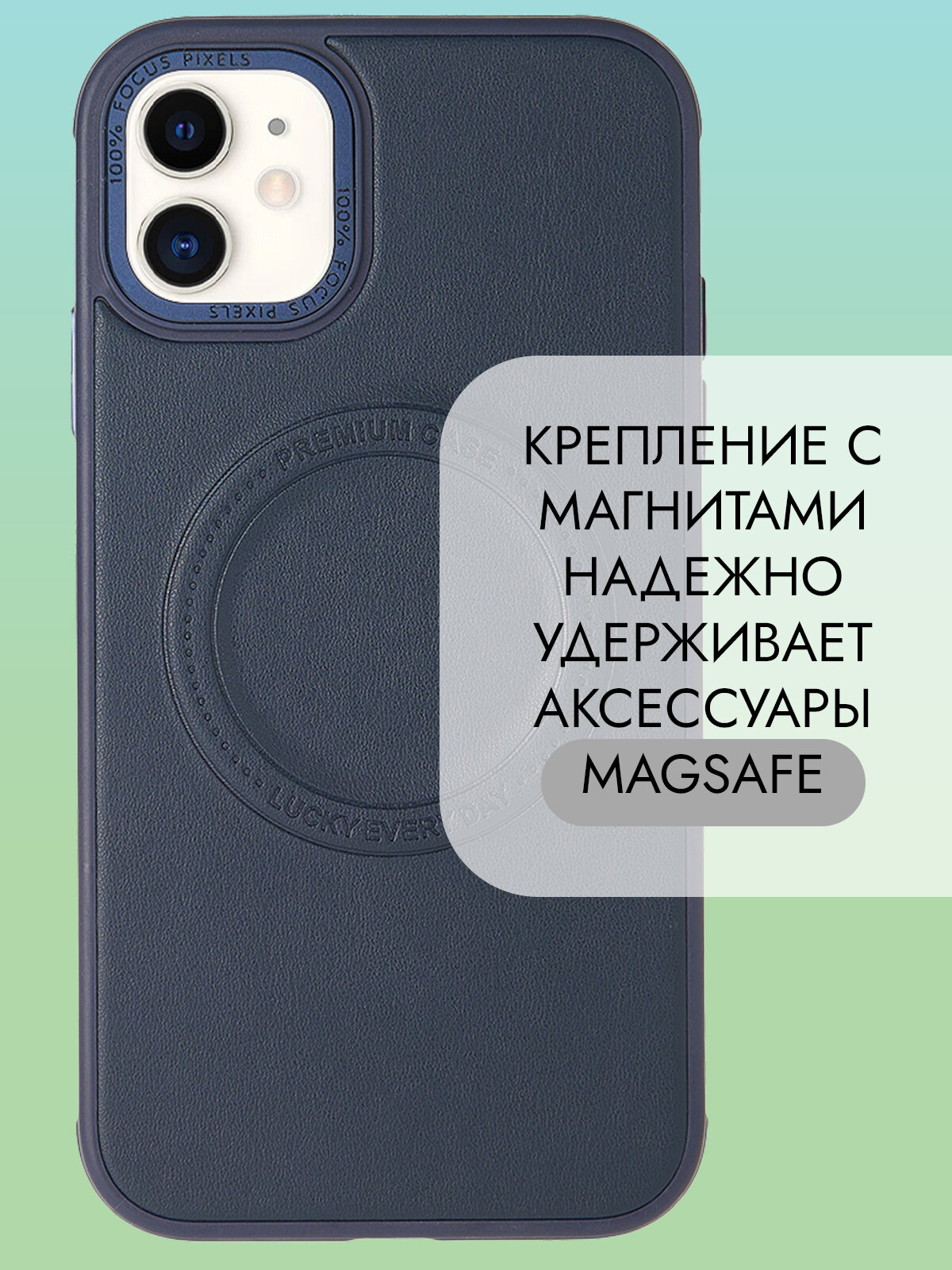 Чехол Magsafe на iPhone 11 противоударный на айфон 11 синий под кожу интересное: