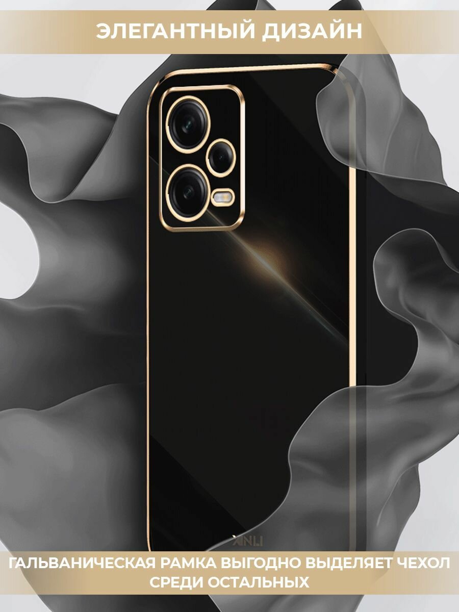 Чехол на Redmi Note 12 Pro Plus защитный силиконовый бампер на Редми Нот 12 Про Плюс с золотой рамкой Черный