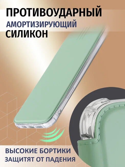 Чехол-книжка на iPhone 14 с противоударным бампером с усиленными углами на айфон 14 Светло-зеленый интересное: