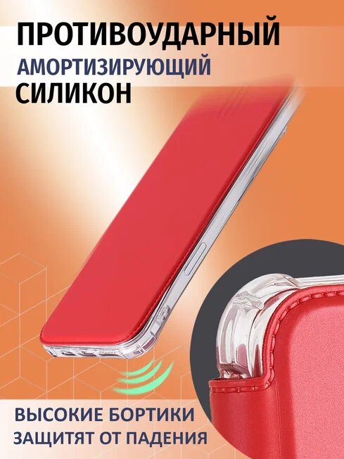 Чехол-книжка на iPhone 14 с противоударным бампером с усиленными углами на айфон 14 Красный интересное: