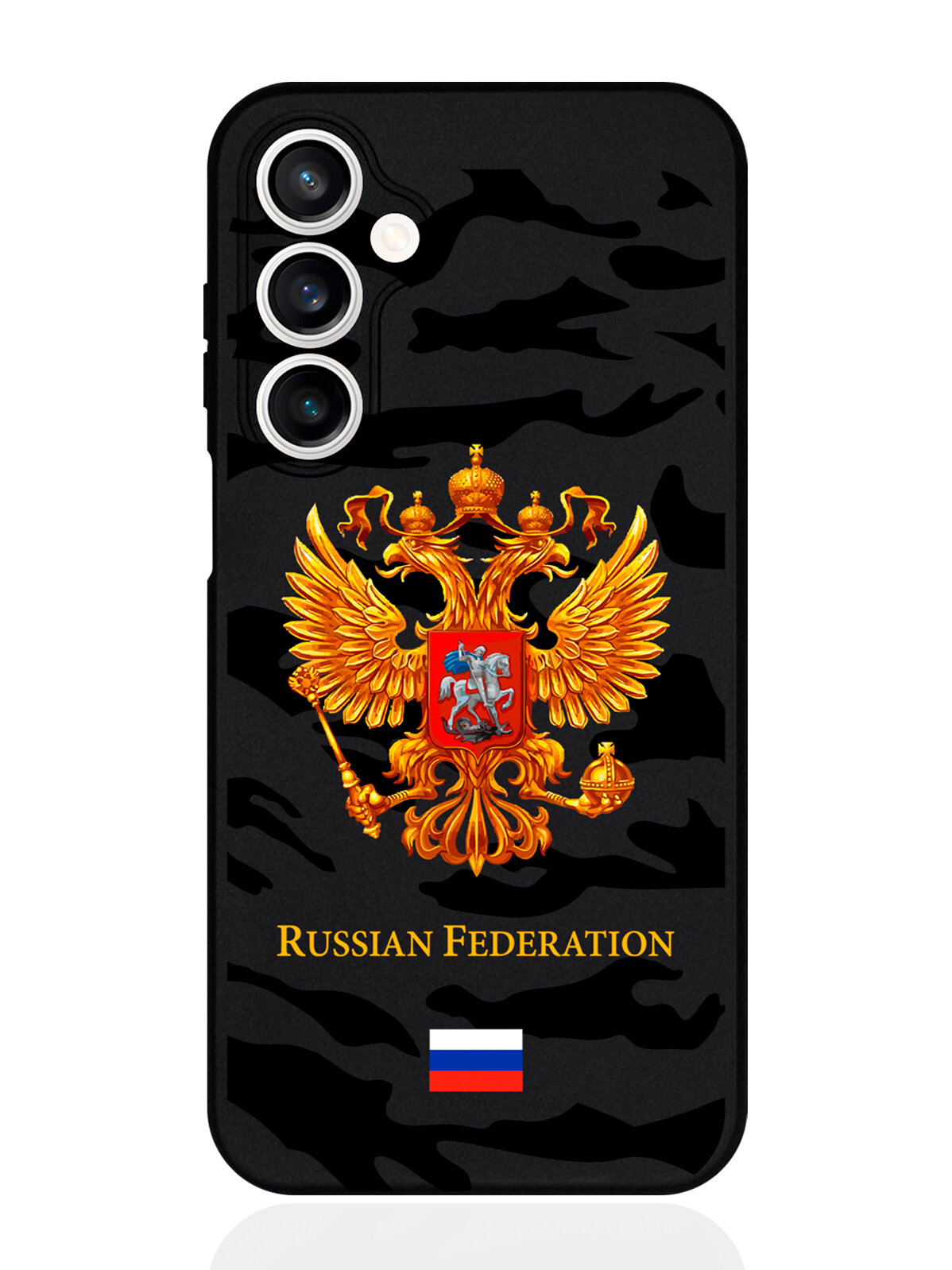Чехол для смартфона Samsung S23Fe черный силиконовый Черный лаковый Герб Россия