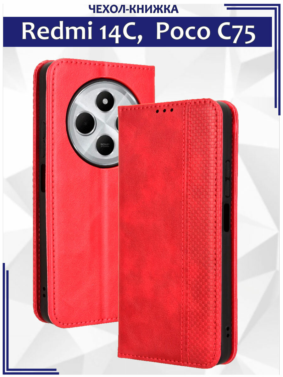 Купить Чехол книжка для Xiaomi Redmi 14C, Poco C75 (4G) с магнитом и отделением под карты / Редми 14С, Поко С75 (красная)
